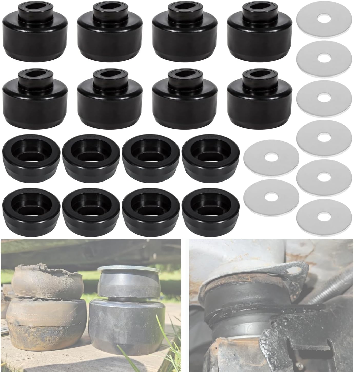 Upgrade your truck’s cab mounting system with the Body and Cab Mount Bushing Kit, precision-engineered for 1999–2014 Chevy Silverado and GMC Sierra 1500/2500 models (2WD/4WD, standard or extended cab, oval upper mounts) . This complete 24-piece kit is manufactured to OEM specifications, ensuring a direct fit without modification. Superior Material for Lasting Performance Constructed from a high-density polyurethane blend, these body mounts deliver exceptional durability. Unlike rubber mounts that wear out over time, this polyurethane formulation resists deformation, corrosion, impact, and aging. The kit also includes eight plated steel washers for added structural integrity. Enhanced Ride Comfort & Stability Designed to reduce noise and vibration more effectively than factory mounts, this kit maintains proper body-to-frame alignment while providing a firmer, more secure attachment. The cushioning effect helps isolate the cab from road impacts, delivering a smoother, quieter driving experience even under demanding conditions
