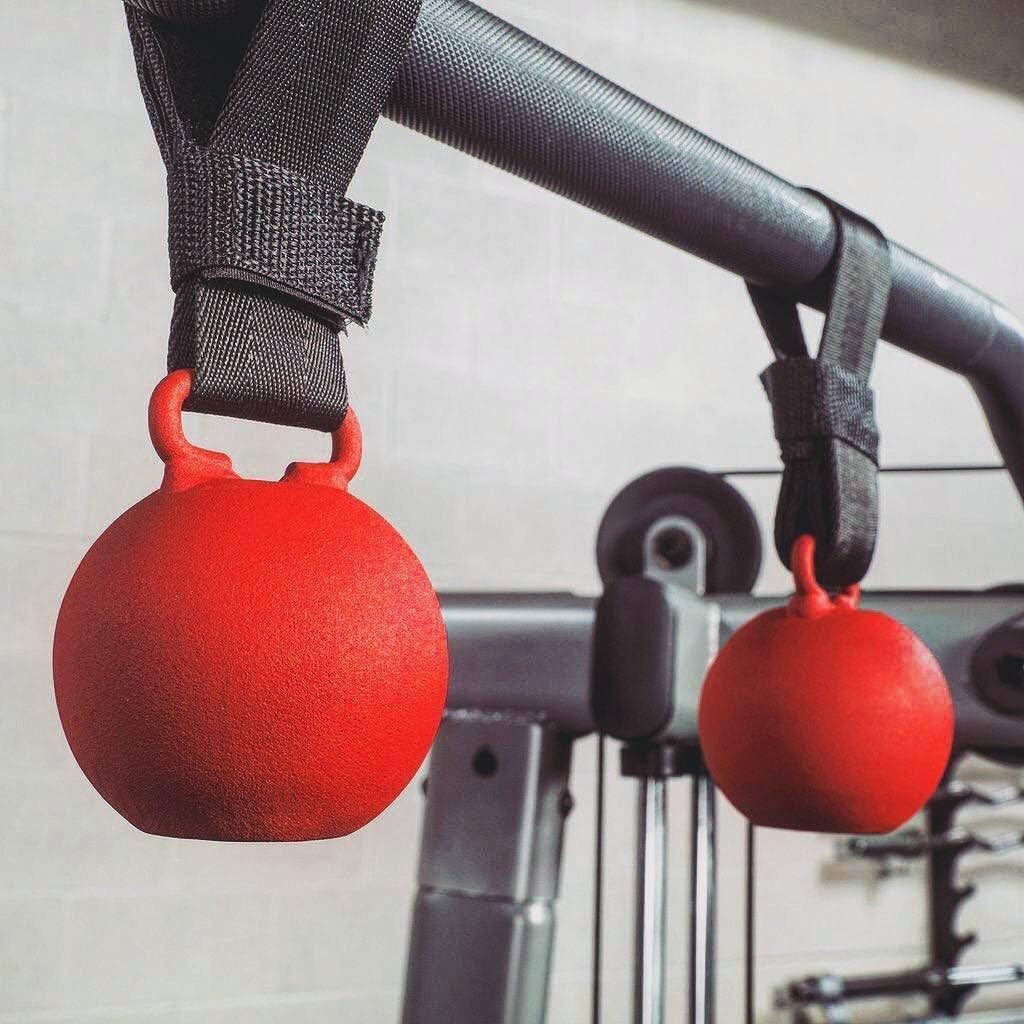 Body Solid Tools Cannonball Grips (BSTCB) offer athletes multiple ways to increase grip strength, focusing in on a crucial element that is often overlooked in strength training. These training grips are constructed with a red non-slip matte finish, sturdy carabiner, and durable nylon strap. Attach them to a pull-up bar to perform pull-ups and chin-ups that focus on grip strength, or link them to dumbbells, barbells, home gyms, cable crossovers, and other cable machines to perform lifts and other exercises to further strengthen your grip. For added versatility, the newly-upgraded carabiner attachment allows users to swap the Cannonball Grips with other Body-Solid grip strength products, including the Dog Bone Grip (BSTDB) and Nunchuck Grip (BSTNG). Body-Solid Cannonball Grips measure 3 by 3 by 3. 8 inches (L x W x H; 12 inches high with strap) and weigh 2. 7 pounds.