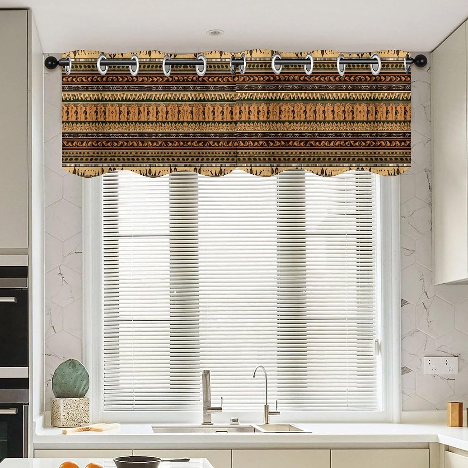 Bohemia Style Traditional African Pattern printed Window Valance Is A Great Home Decoration That Matches Your Home Style. Short Curtains Are Perfect For Window Spaces In Your Living Room, Bedroom, Dining Room, Kitchen, And Bathroom. Grommet Valances Are Beautiful And Practical, Made Of High-Quality Curtain Fabric, Adding A Sense Of Design To Your Room. Small Tiers Curtains Are Suitable For Most Hanging Poles, With Smooth Opening And Closing, And Can Effectively Protect Your Privacy. Curtain Aperture: 1.77 Inches