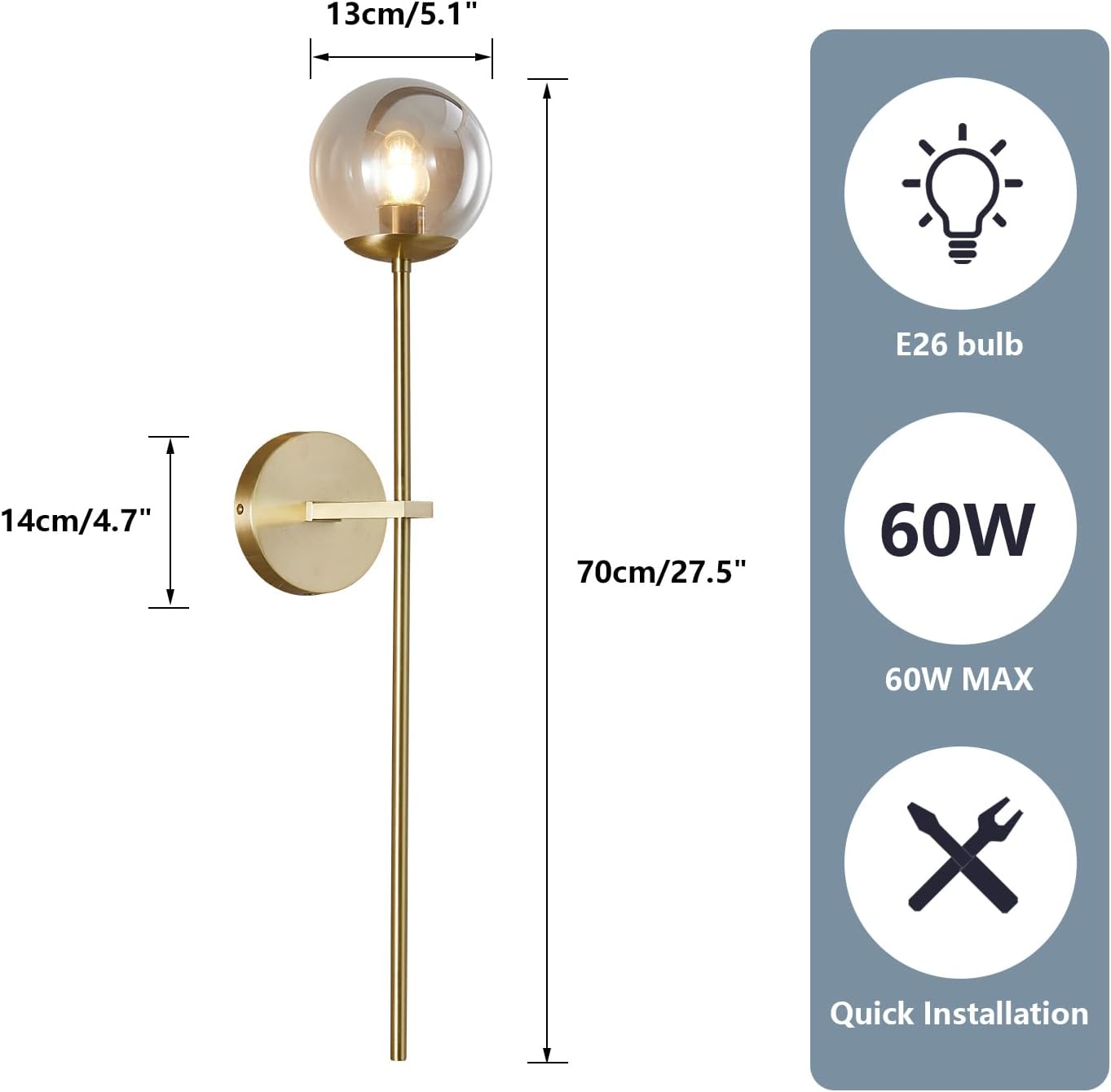 • 【Minimalist DESIGN】 The wall sconce is made of sturdy metal with a gold finish and hand-blown glass, creating a vintage minimalist look. The minimalist wall sconce's soft and even light transmission creates a warm and pleasant atmosphere. Not only is it a functional interior wall sconce, but also a classic home decor.