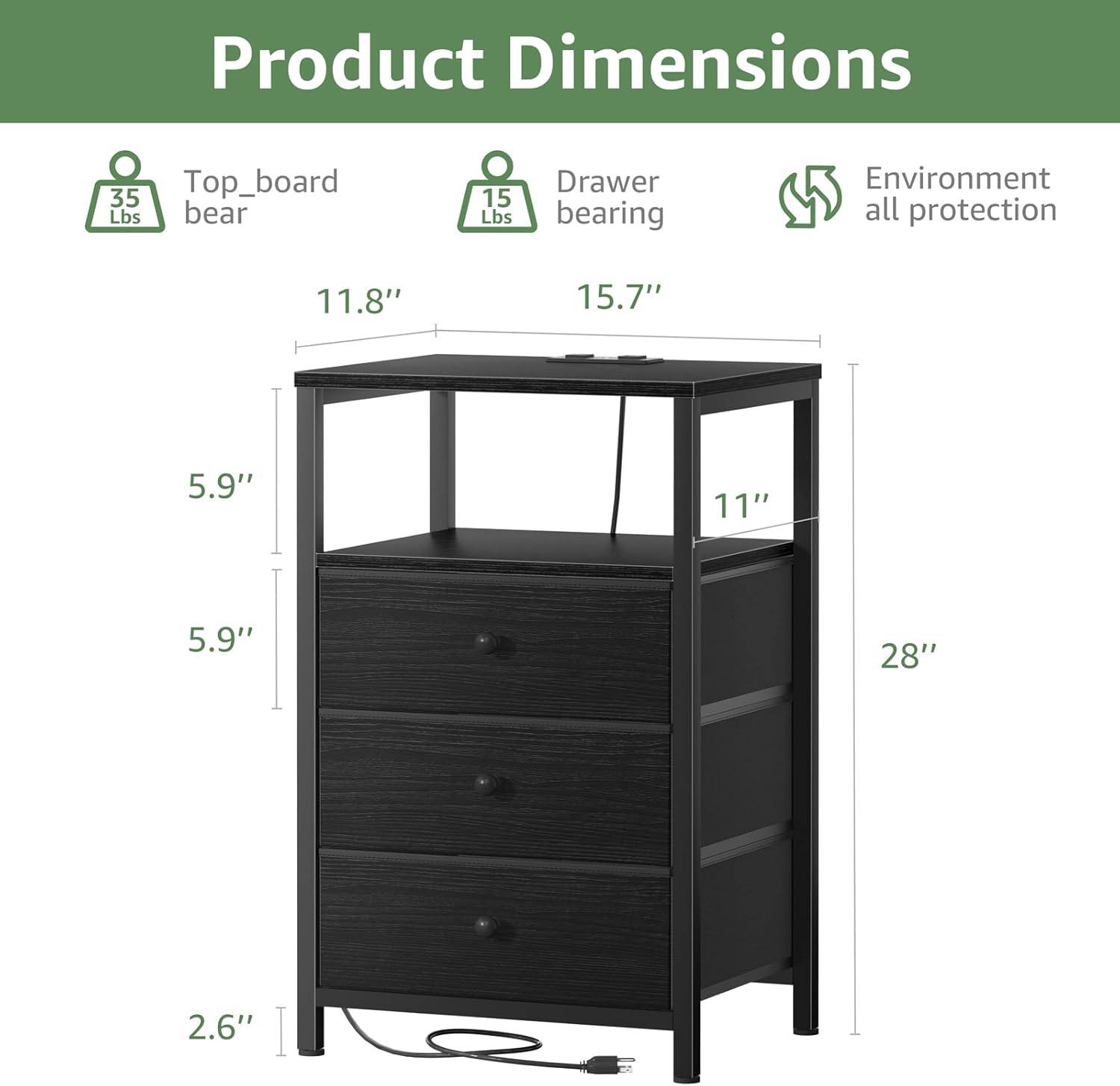 | Size | 11.8"D x 15.7"W x 23.6"H(2 drawers) |