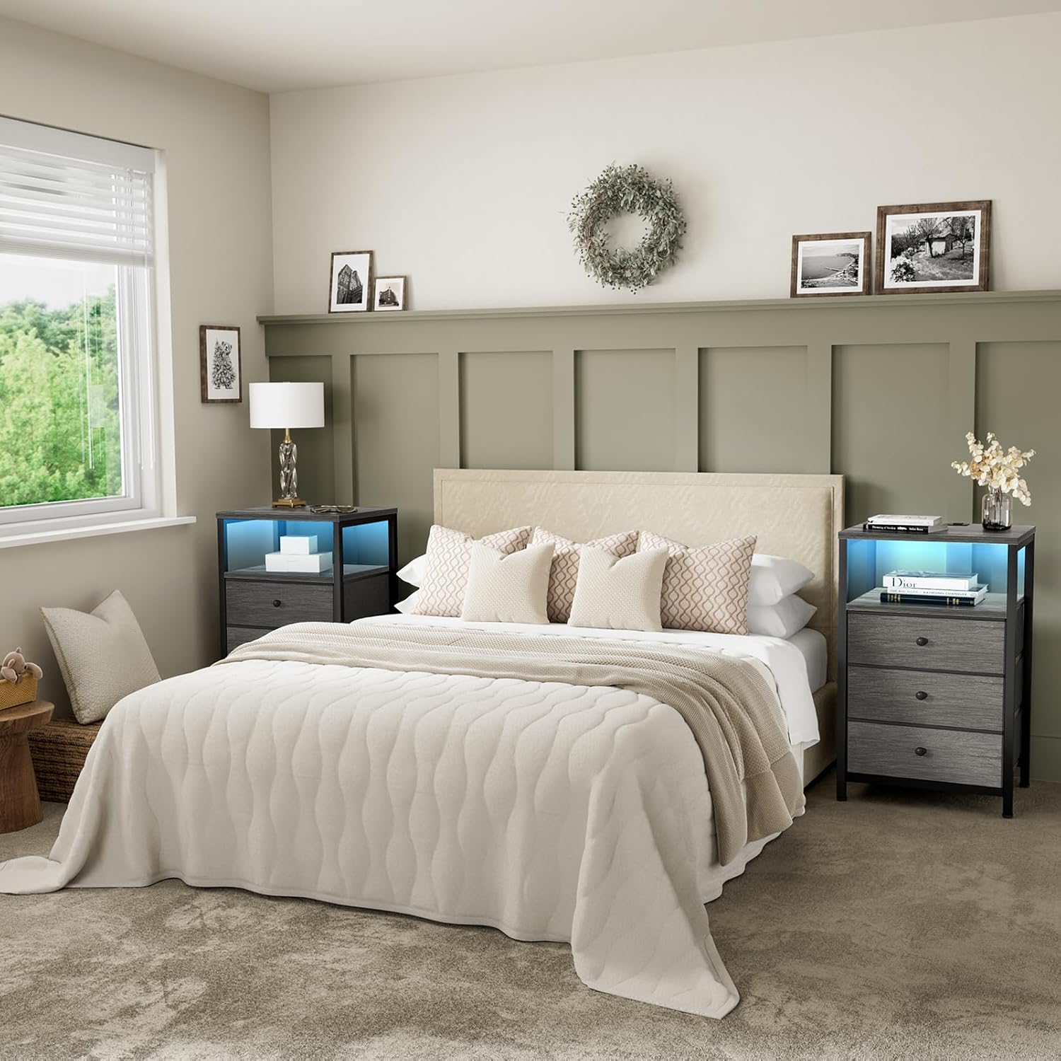 | Model Name | Grey nightstand with 2 drawers |