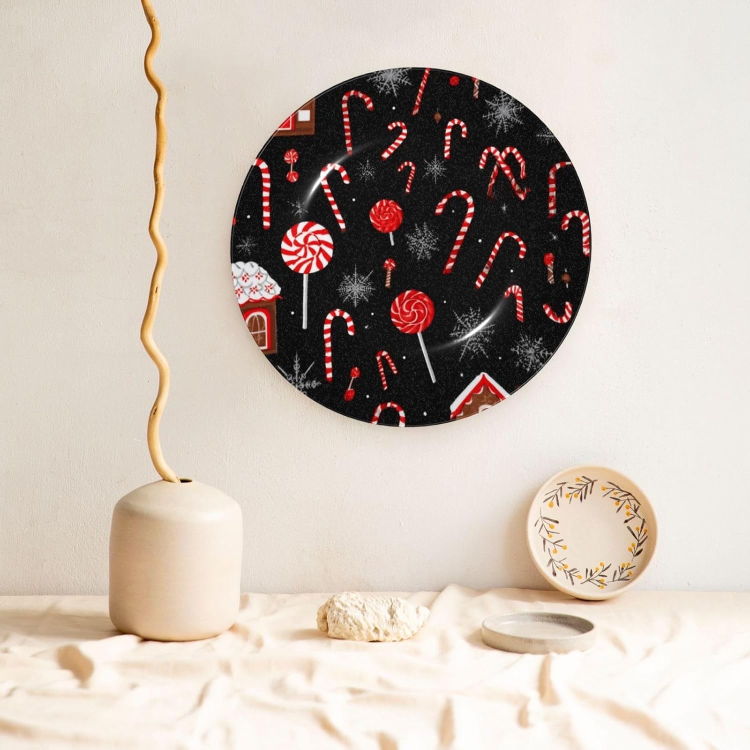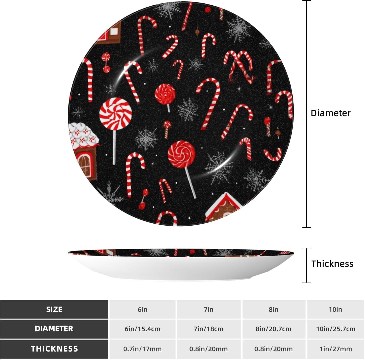 gokays decorative platedo you feel that your table is monotonous? Then use our decorative plate to add a little fun to the monotony of life.featuressize - 6 inch diameter;7 inch diameter;8 inch diameter;10 inch diametermaterial - ceramic design - Christmas lollipop package - 1 x ceramic decorative plate, 1 x stand, 1 x pothookwhy choose gokays decorative plates?advantageas manufacturers we follow current trends and bring you the latest home fashion. Salad plates ideal for placement at home or in the office. Traditional porcelain making technology, fine workmanship. Ceramic dinner plates is a good gift for family and friends.convenient to useour dinner plates rack for display has 2 ways to use, you can just place the bracket base on a flat surface first, and then put the plate on it, also you can stick the provided pothook at the back of the plate, and then stick the plate on the wall, you can choose the suitable installation method according to the actual situation.occasionour ceramic ornaments salad plates is a perfect decorative and collection for any niche, table, or mantle at your home. Perfect for your office, home, living room, dining room, playroom, kitchen, cafe, study, studio, club, bar, and others.in a surprise for your family and friends!porcelain dessert plates is a perfect gift for any person in your life. You can give it directly to your lover as mother's day gift/father's day gift/birthday gift/christmas gift/valentines day gift/anniversary gift/wedding gift/housewarming gift/new home gift.start with our funny decorative plate, refresh your rooms!