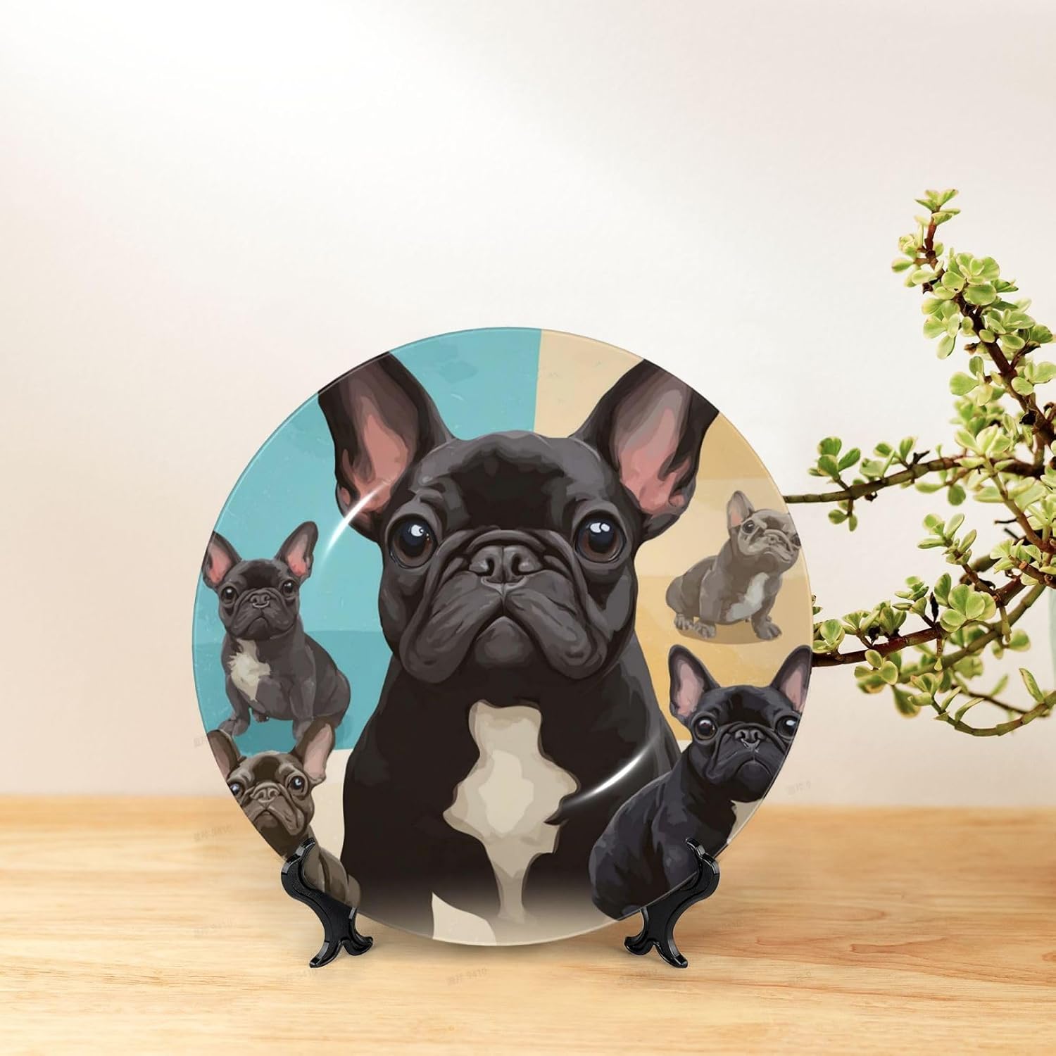 gokays decorative platedo you feel that your table is monotonous? Then use our decorative plate to add a little fun to the monotony of life.featuressize - 6 inch diameter;7 inch diameter;8 inch diameter;10 inch diametermaterial - ceramic design - French Bulldog Dog Cute package - 1 x ceramic decorative plate, 1 x stand, 1 x pothookwhy choose gokays decorative plates?advantageas manufacturers we follow current trends and bring you the latest home fashion. Salad plates ideal for placement at home or in the office. Traditional porcelain making technology, fine workmanship. Ceramic dinner plates is a good gift for family and friends.convenient to useour dinner plates rack for display has 2 ways to use, you can just place the bracket base on a flat surface first, and then put the plate on it, also you can stick the provided pothook at the back of the plate, and then stick the plate on the wall, you can choose the suitable installation method according to the actual situation.occasionour ceramic ornaments salad plates is a perfect decorative and collection for any niche, table, or mantle at your home. Perfect for your office, home, living room, dining room, playroom, kitchen, cafe, study, studio, club, bar, and others.in a surprise for your family and friends!porcelain dessert plates is a perfect gift for any person in your life. You can give it directly to your lover as mother's day gift/father's day gift/birthday gift/christmas gift/valentines day gift/anniversary gift/wedding gift/housewarming gift/new home gift.start with our funny decorative plate, refresh your rooms!