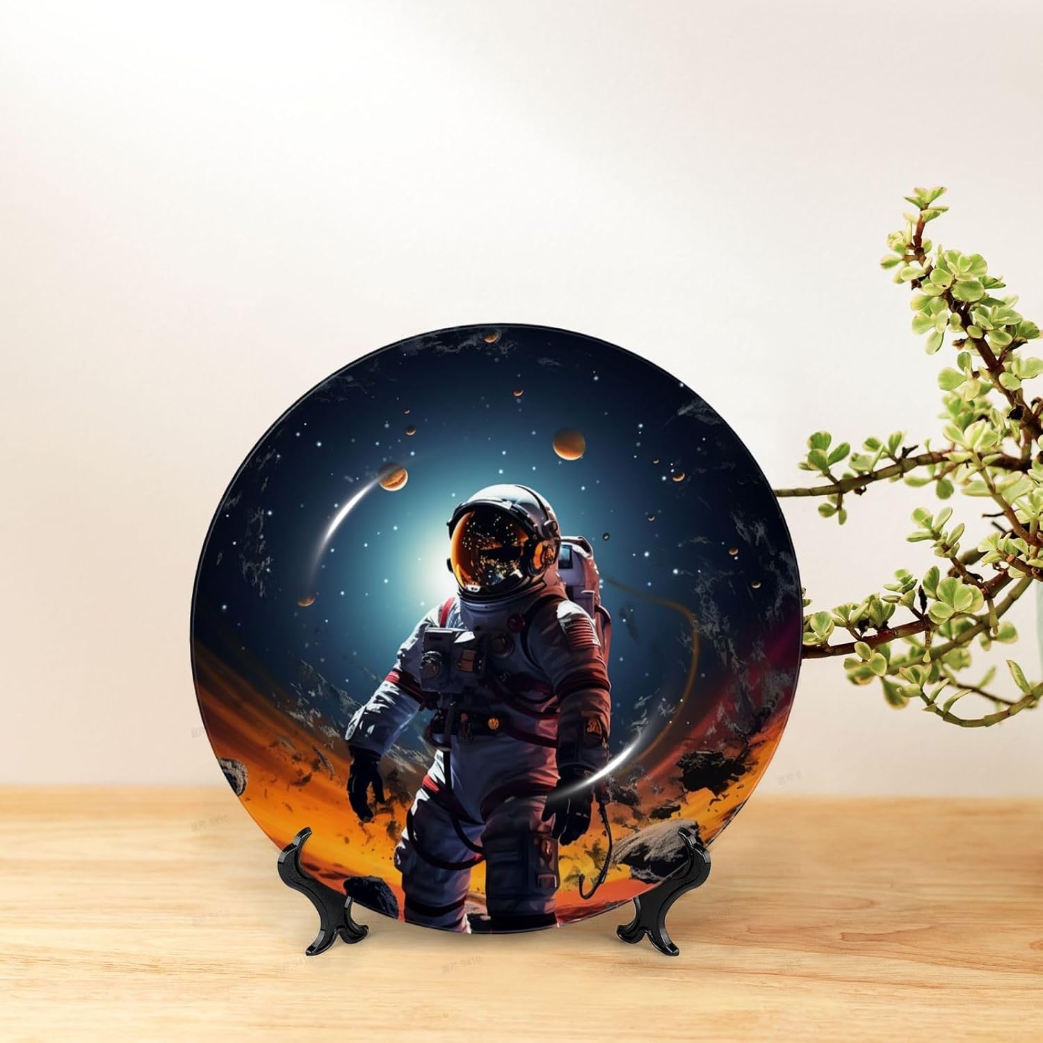 gokays decorative platedo you feel that your table is monotonous? Then use our decorative plate to add a little fun to the monotony of life.featuressize - 6 inch diameter;7 inch diameter;8 inch diameter;10 inch diametermaterial - ceramic design - Starry sky astronaut package - 1 x ceramic decorative plate, 1 x stand, 1 x pothookwhy choose gokays decorative plates?advantageas manufacturers we follow current trends and bring you the latest home fashion. Salad plates ideal for placement at home or in the office. Traditional porcelain making technology, fine workmanship. Ceramic dinner plates is a good gift for family and friends.convenient to useour dinner plates rack for display has 2 ways to use, you can just place the bracket base on a flat surface first, and then put the plate on it, also you can stick the provided pothook at the back of the plate, and then stick the plate on the wall, you can choose the suitable installation method according to the actual situation.occasionour ceramic ornaments salad plates is a perfect decorative and collection for any niche, table, or mantle at your home. Perfect for your office, home, living room, dining room, playroom, kitchen, cafe, study, studio, club, bar, and others.in a surprise for your family and friends!porcelain dessert plates is a perfect gift for any person in your life. You can give it directly to your lover as mother's day gift/father's day gift/birthday gift/christmas gift/valentines day gift/anniversary gift/wedding gift/housewarming gift/new home gift.start with our funny decorative plate, refresh your rooms!