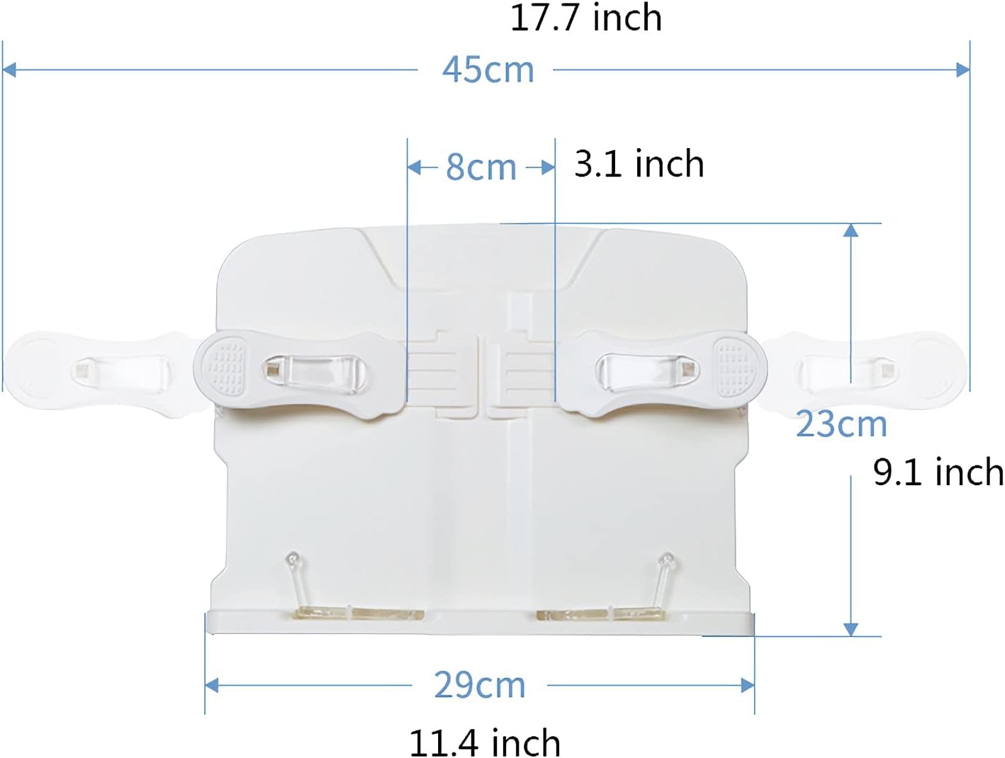 Multi-purpose: in the office, home, university, kitchen or bed. You can place cookbooks, novel books, etc., anywhere, or place music scores while playing guitar or piano. Very suitable for yourself or as a gift.Product name: book stand for deskColor: WhiteSpecifications: Dimensions: the length 29cm(11.4 inch), the width 23cm(9.1 inch)Purpose: Hold book, magazine, tablet etc.notes:1. Please choose size, color and number of pieces before ordering.2. Only the product is included, other props used for shooting are not included in the product, please confirm before purchasing.3. Please note that due to different monitors, there may be slight color difference, please understand.4. Due to manual measurement, some errors may occur, please refer to the actual product, thank you.5. Welcome your sharing and feedback so that we can provide you with better products and services.