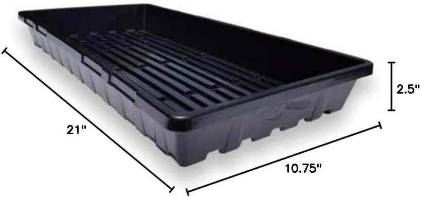 Understanding that farms are NOT a place for fragile objects, we decided to produce these trays for our own farm based off our own dissatisfaction with the flimsy and brittle quality of the other trays available online and in the big box stores. Tired of wasting money and putting more plastic into the landfills, we decided to produce trays that were thicker, could carry more weight and withstand even this farmers abuse. Key Features of our product: Extra Thick Black Plastic. These are meant to be reused over and over, season after season. They are perfect for microgreens, wheatgrass, fodder systems, and germination of seedlings in soil or hydroponics for hobby or commercial growers. The flat tray is a bit wider on the top and slightly tapers to the bottom. Outer dimensions: 21.25 Inches Long x 11 Inches Wide x 2.5 Inches Deep. Makes a great bundle or seed starter kit with our ultra-durable humidity domes.