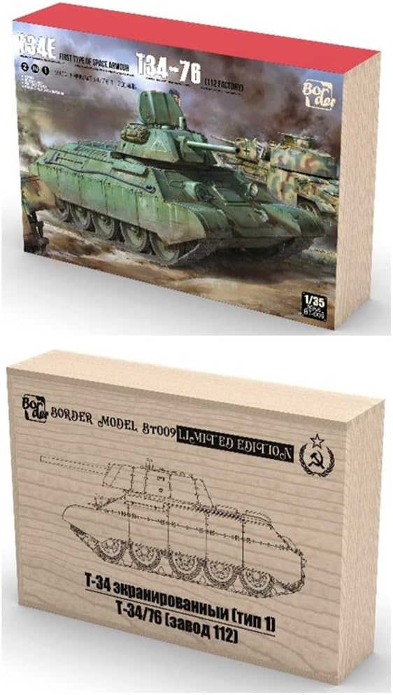 Plastic model "1/35 Soviet Army Medium Tank T34E/T34-76 (2-in-1 Kit)" border model. The T34 has been thoroughly reproduced with a completely new mold. Limited Edition First-Run (Wooden Box Package & Metal Barrel Included) Movable sash. Various accessories included. Metal Spring Movable Suspension T34E and T34-76 112 Factory 2 Types Selectable (2 in 1 Kit) Etched parts included This product is a plastic model that requires assembly and painting. Adhesives, tools, paints, etc., are required for assembly and painting. "Plastic Model" is a registered trademark owned by the Japan Plastic Model Industrial Cooperative Association.