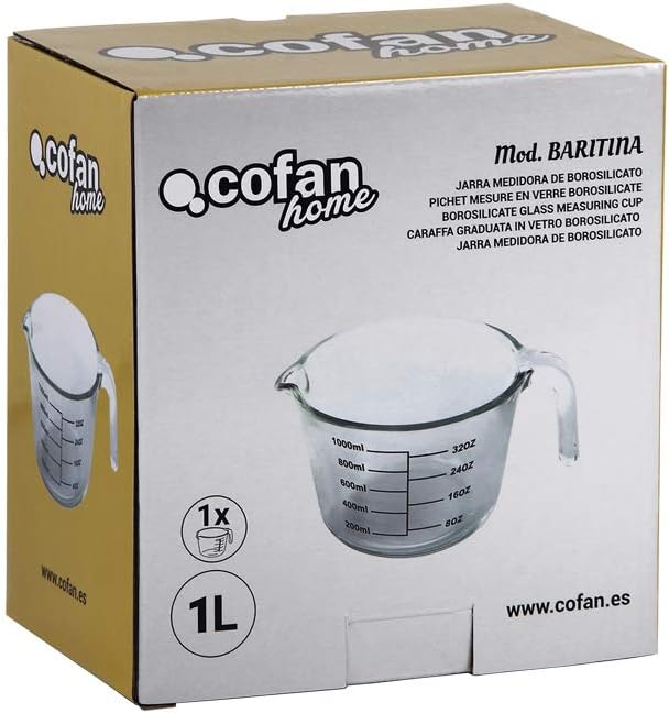 | Included Components | Cofan Borosilicate Measuring Pitcher | Barite Model | Capacity 1 L | Microwave, Oven and Freezer Safe |