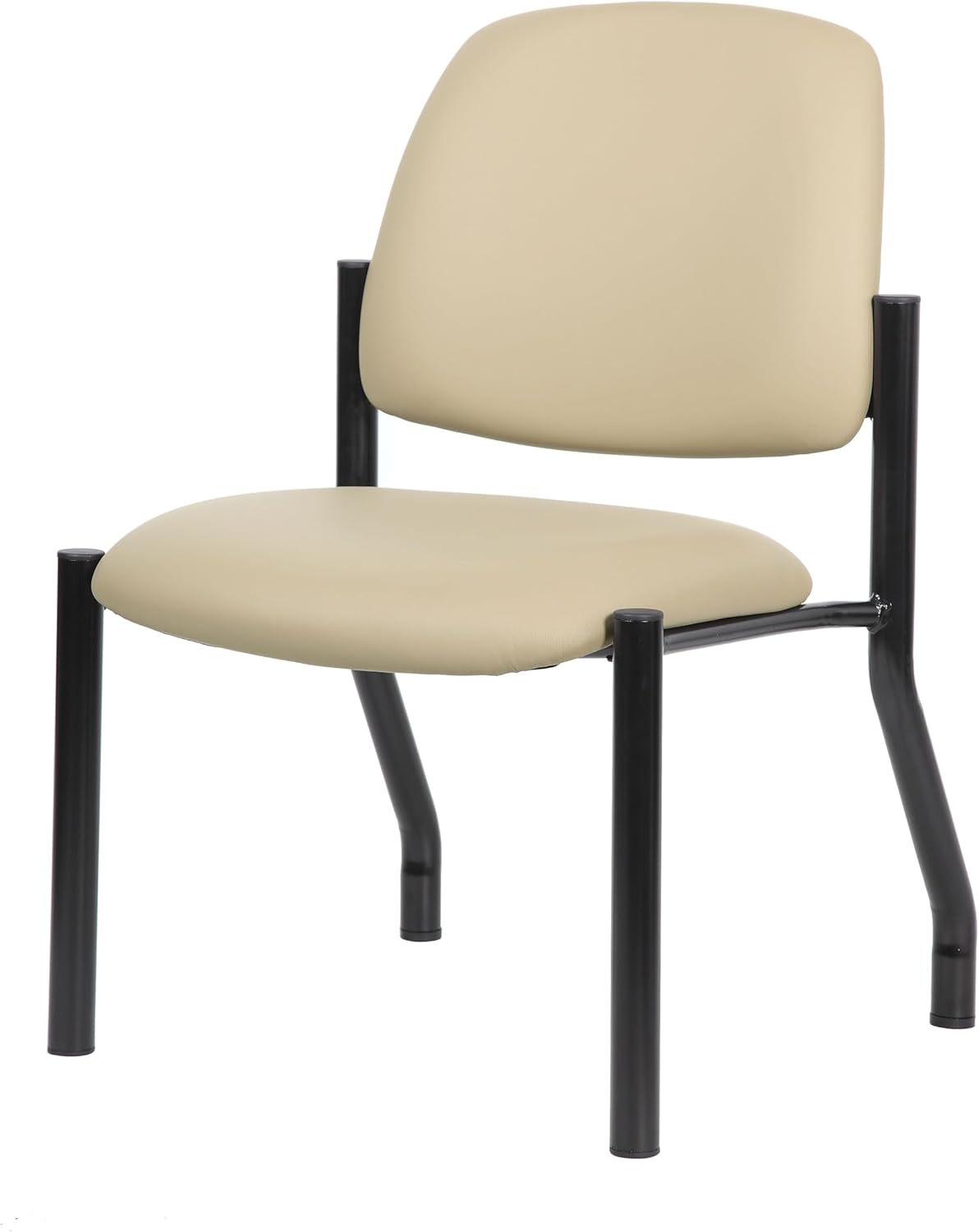 This heavy duty and comfortable mid back guest chair is perfect for anyone seeking additional seating in any room or office. The guest chair is designed with a strong and easy to clean beige vinyl material that lends a professional appearance along with a sturdy four leg tubular black steel base that offers coziness and strength. The chair stands at a fixed height with an streamlined armless design and boast a weight capacity of 300 lbs.