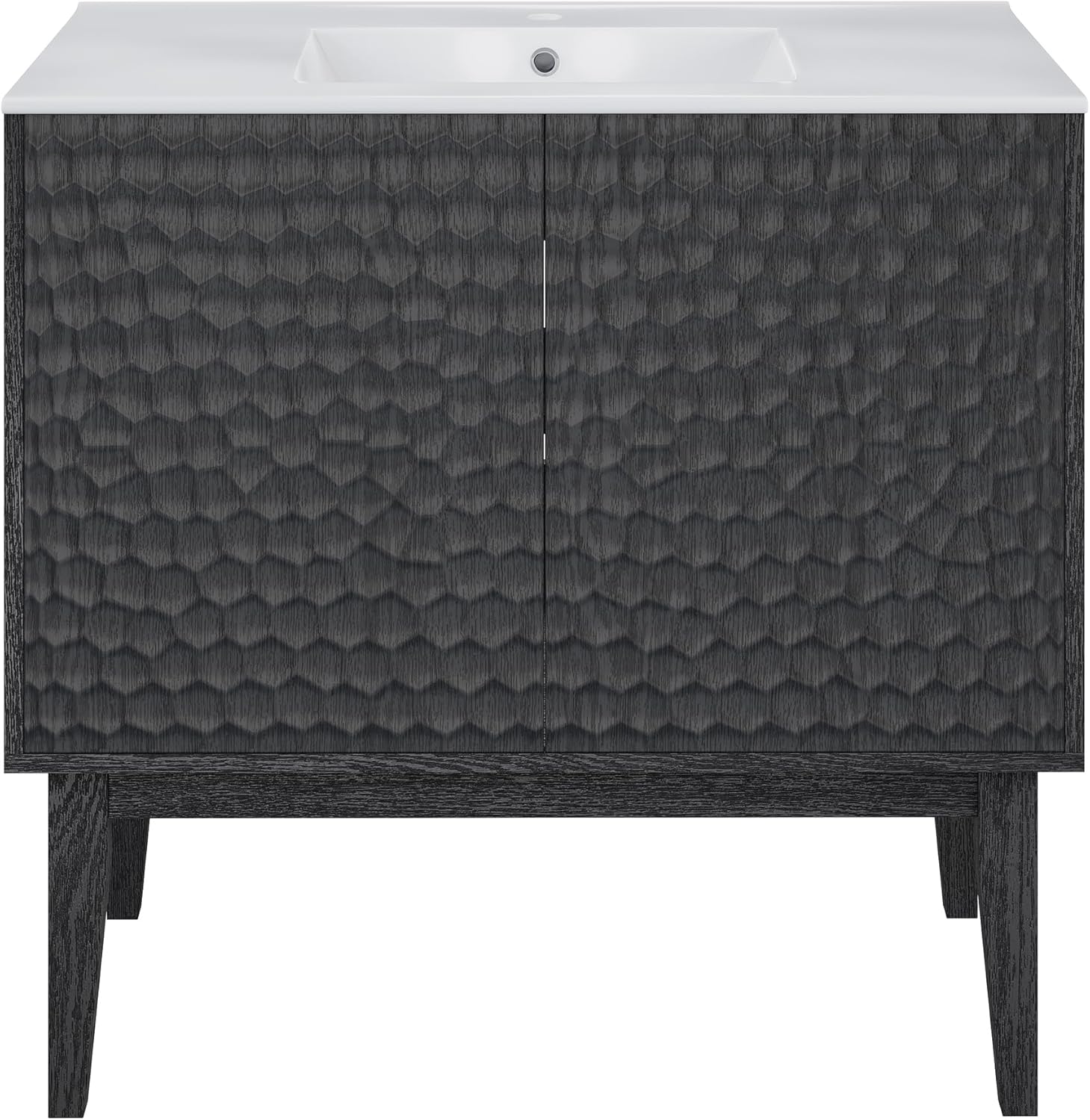 Elevate your living space with the distinctive allure of the Bosse Collection, where contemporary design seamlessly melds with innovative aesthetics, crafting an environment that effortlessly redefines modern living with a touch of individuality Tailor your bathroom to perfection with our cabinets-only vanities, offering customizable vanity top solutions to integrate with your design vision. Offered in black oak.