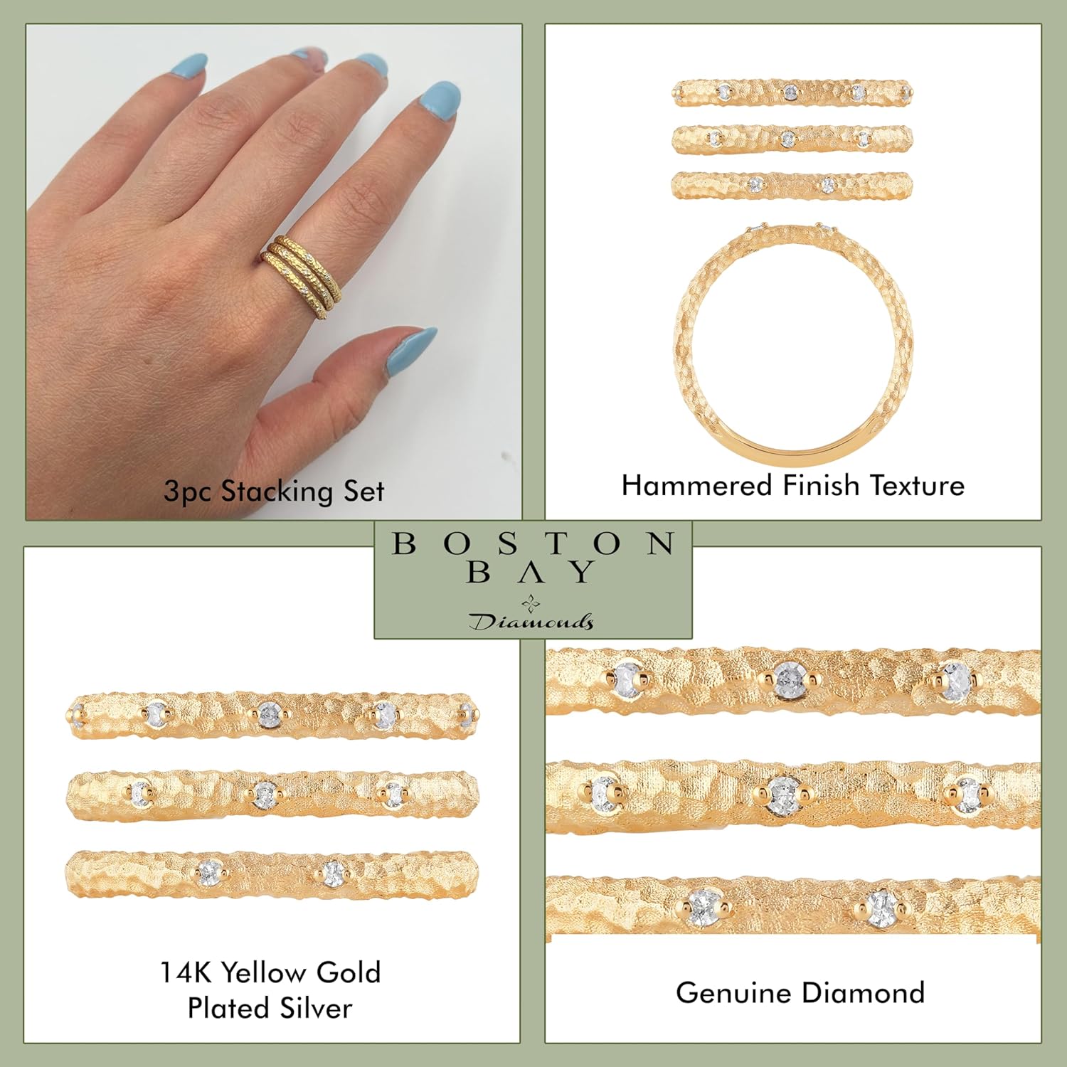 | Color | 14KY Silver 3-Ring Stack |