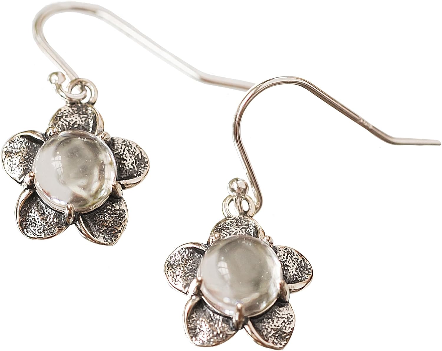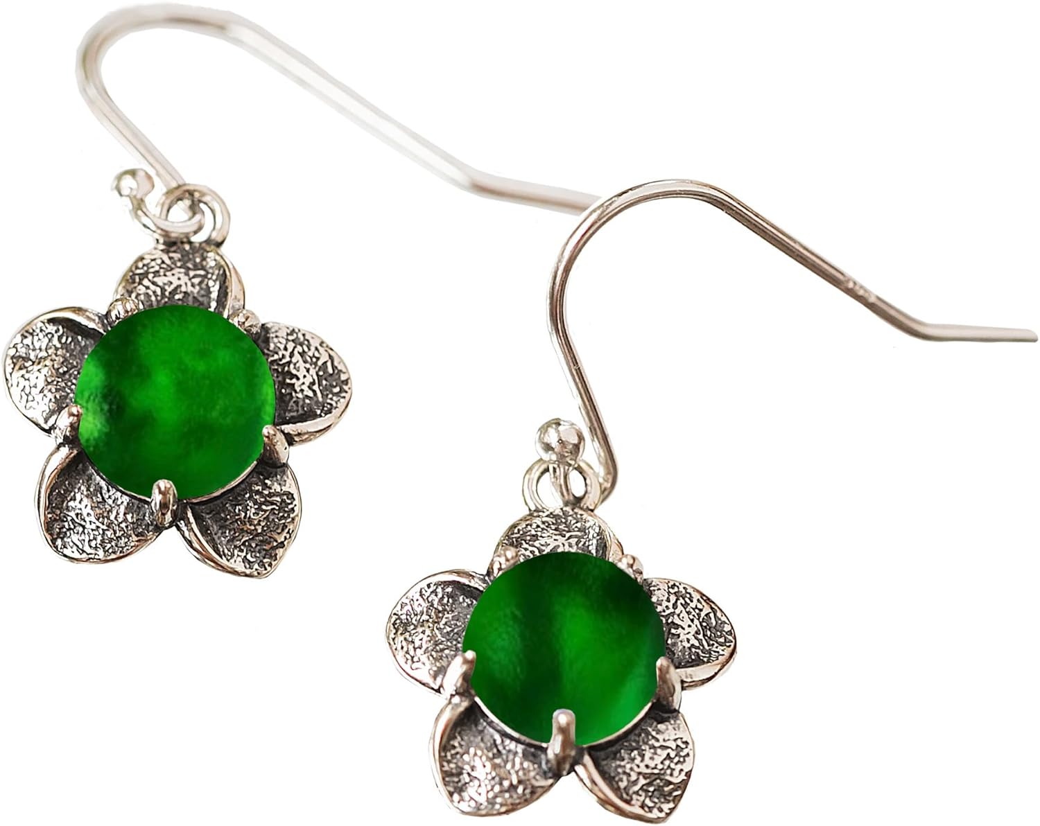 Our beautiful Bloom Once More earrings feature a lovely sterling silver flower design with an 8mm glowing center of our handmade glass gems. Broken remains of antique glass and bottles are taken from the environment, ground and fired into glossy jeweltone gems to give the flowers pretty vintage inspired colors and history.