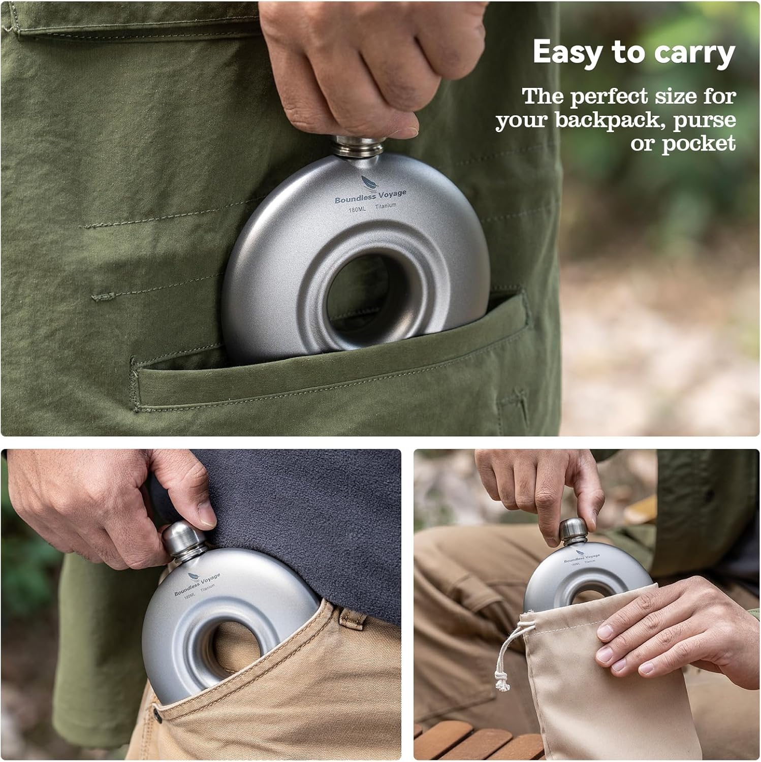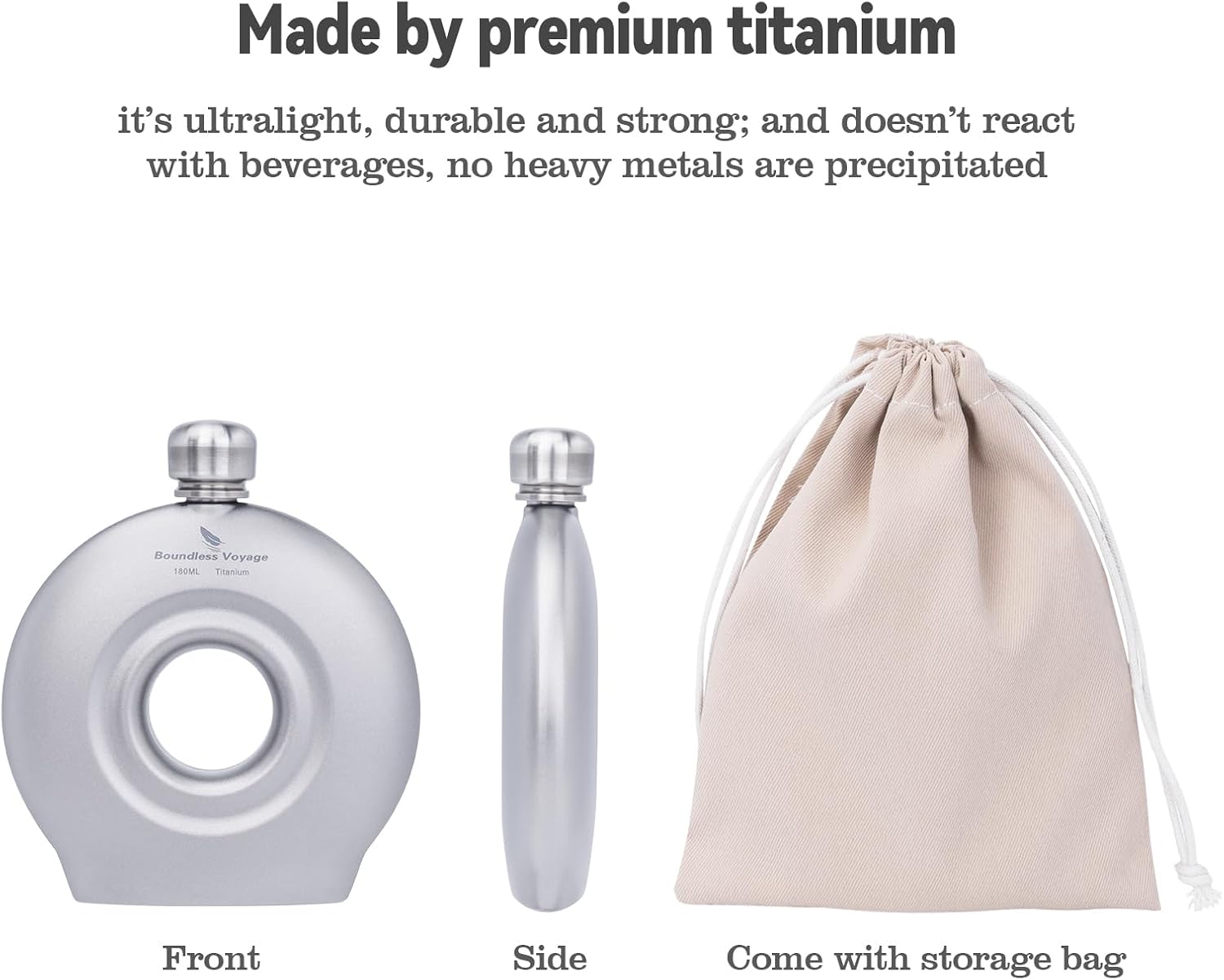 Brand:Boundless VoyageItem: Ti3067DMaterial: TA1 titaniumSize: (W)11.3x(H)13x(T)2.5 cm, diameter of the circle about 3.2cmCapacity: 180mlWeight: about 93g (lid 24g)Place of origin: China