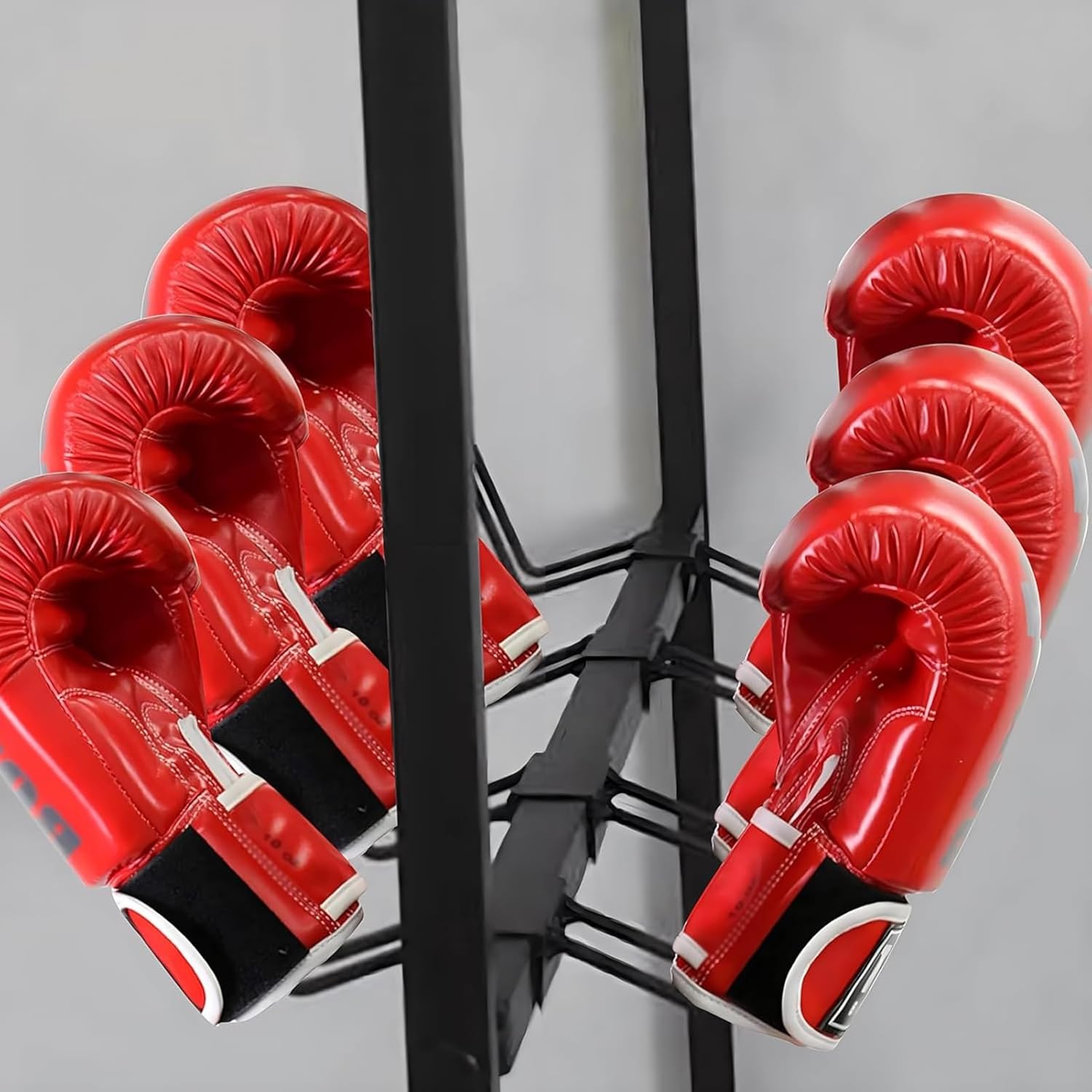 - Name: Boxing Glove Stand Floor Standing- Material: High-quality Metal- Color: Black- Style: ModernFeatures:- Equipped with universal wheels for easy mobility.- Simple installation process; designed for quick assembly and disassembly.- Comes with a removable hook for convenient repositioning.Package Contents:Choose from two options:1. 1-Piece Set that accommodates up to 20 pairs of gloves.Elevate your boxing experience and ensure your gloves remain in peak condition with our Boxing Glove Wall Mount Dryer.