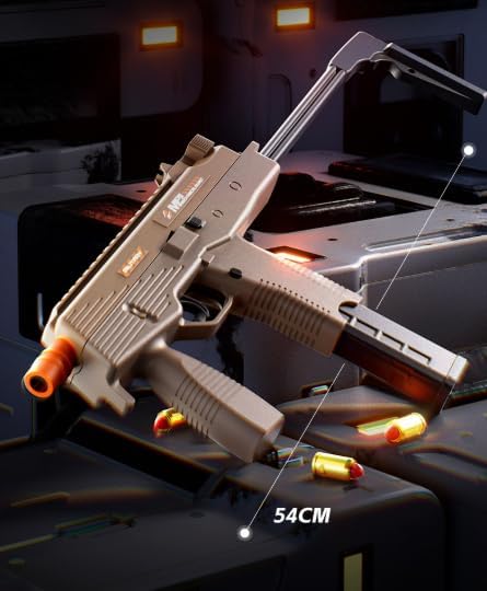 Discover the MP9 soft ball toy gun, the perfect companion for children's action and adventure games! Inspired by the iconic MP9 design, this impressive toy is equipped with a foldable stock that makes storage and transport easy. Thanks to its multi-shot mechanism, children can safely chain the shots of foam balls with a range of up to 10 m. The removable charger allows you to charge quickly so you never interrupt the action. The trigger is well positioned for a comfortable and intuitive grip. Made of durable materials, this toy gun offers a realistic design in a stylish sand colourway, perfect for role-playing and outdoor battles. This decompression toy stimulates children's creativity and imagination while providing hours of entertainment. Suitable for children who love dynamic games and outdoor adventures. Soft foam balls are included. Recommended parental supervision when in use.