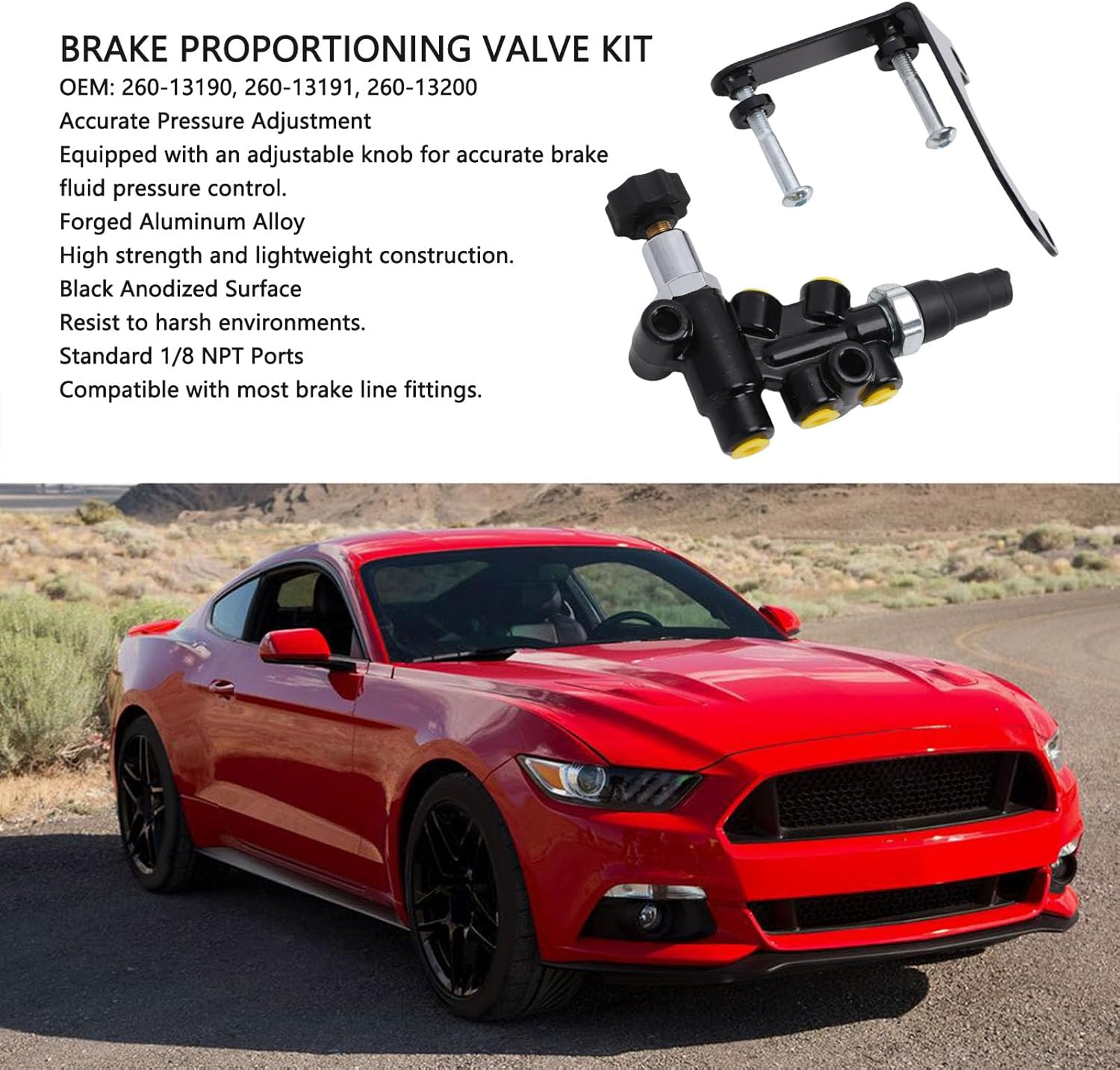 Specification: Item Type: Brake Proportioning Valve Kit Color: Black Material: Aluminium Alloy Features: The 260-13190 proportioning valve (black) is suitable for brake modification and repair of multiple model, accurate pressure adjustment to enhance brake stability, high strength material and universal installation design balance durability and convenience, brand certification ensures safety, meets professional and daily use needs. OEM: 260-13190, 260-13191, 260-13200 Fitment: Replacement for Mustang 1964-2021 Replacement for Camaro 1967-2022 Replacement for 1964-1987 Replacement for Malibu 1978-1983, 1997-2022 Replacement for Monte Carlo 1970-1988 Replacement for 1986-2024 Replacement for 1982, 1984-1987 Replacement for Regal 1978-1987 Replacement for Skylark 1961-1972 Replacement for T-type 1983-1987 Replacement for 1959-1977 Replacement for Grand Prix 1962-1987 Replacement for 1961-1974 Replacement for Tempest 1961-1970 Replacement for Cutlass 1961-1987 Package List: 1 x Proportioning Valve 1 x Coil 2 x Large Screws 5 x Small Screws 2 x Washers 1 x Bracket Note: Please double check the part number of your item, matching information is for reference only.