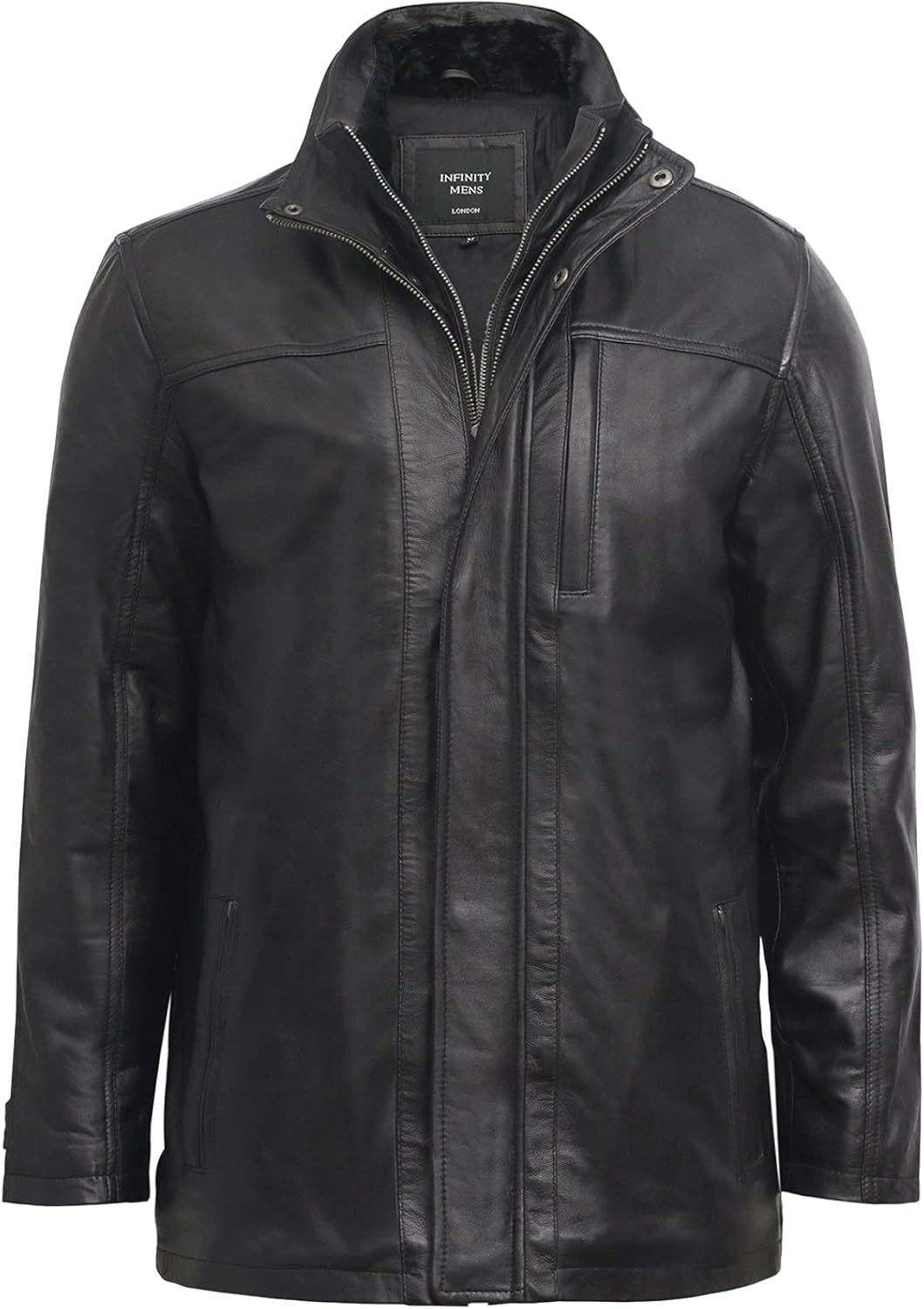 A beautifully tailored warm leather jacket crafted from soft supple Nappa Leather. This jacket features an YKK Zip fastening that is overlapped by covered press studs for added comfort. To help keep the cold wind at bay you will a high funnel neck collar. In addition there is an inner fleece line collar that adds an extra layer of comfort and insulation. For added practicality this jacket features five external pockets one vertical zipped at the chest and another two zipped pockets at the hip plus two open handwarmers. To help provide a more customised fit the cuffs are adjustable with a press stud fastened strap which allows them to be cinched in.