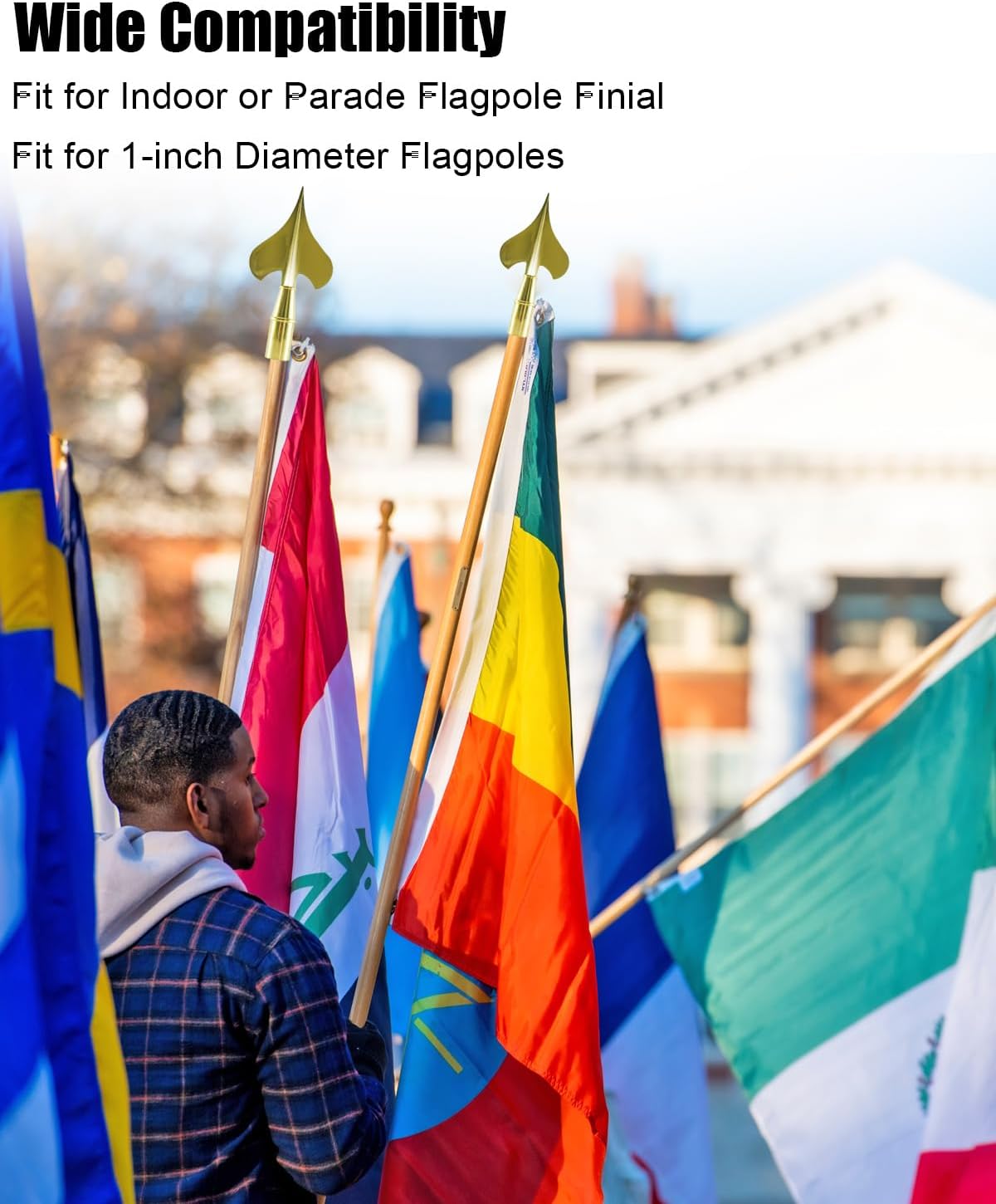 Compatible Models: Fit for for Indoor or Parade Flagpole Finial, Fit for 1-inch Diameter Flagpoles High-Quality Brass Material: Flagpole cap is made of high-quality brass, ensuring it retains its luster with regular maintenance. Whether used indoors or outdoors, brass maintains its elegant appearance. It withstands the test of time, remaining bright Increase Durability: In addition to its aesthetic decorative function, the brass flagpole cap also offers practical protection. It effectively covers the top of the flagpole, helping cover the top of the flagpole from minor wear Adding Elegance: Flagpole finial is not just a decorative piece for home or office environments.It's also suitable for various formal occasions. Whether indoors or outdoors, it adds a distinctive and elegant aesthetic to your flagpole, enhancing the atmosphere of any occasion and creating a more dignified and prestigious effect Easy to install: Flagpole finial is incredibly easy to install. Simply attach it to the top of the flagpole, and replacement can be completed in minutes. It's easy to use and enhances the overall aesthetics of the flagpole for any celebratory occasion