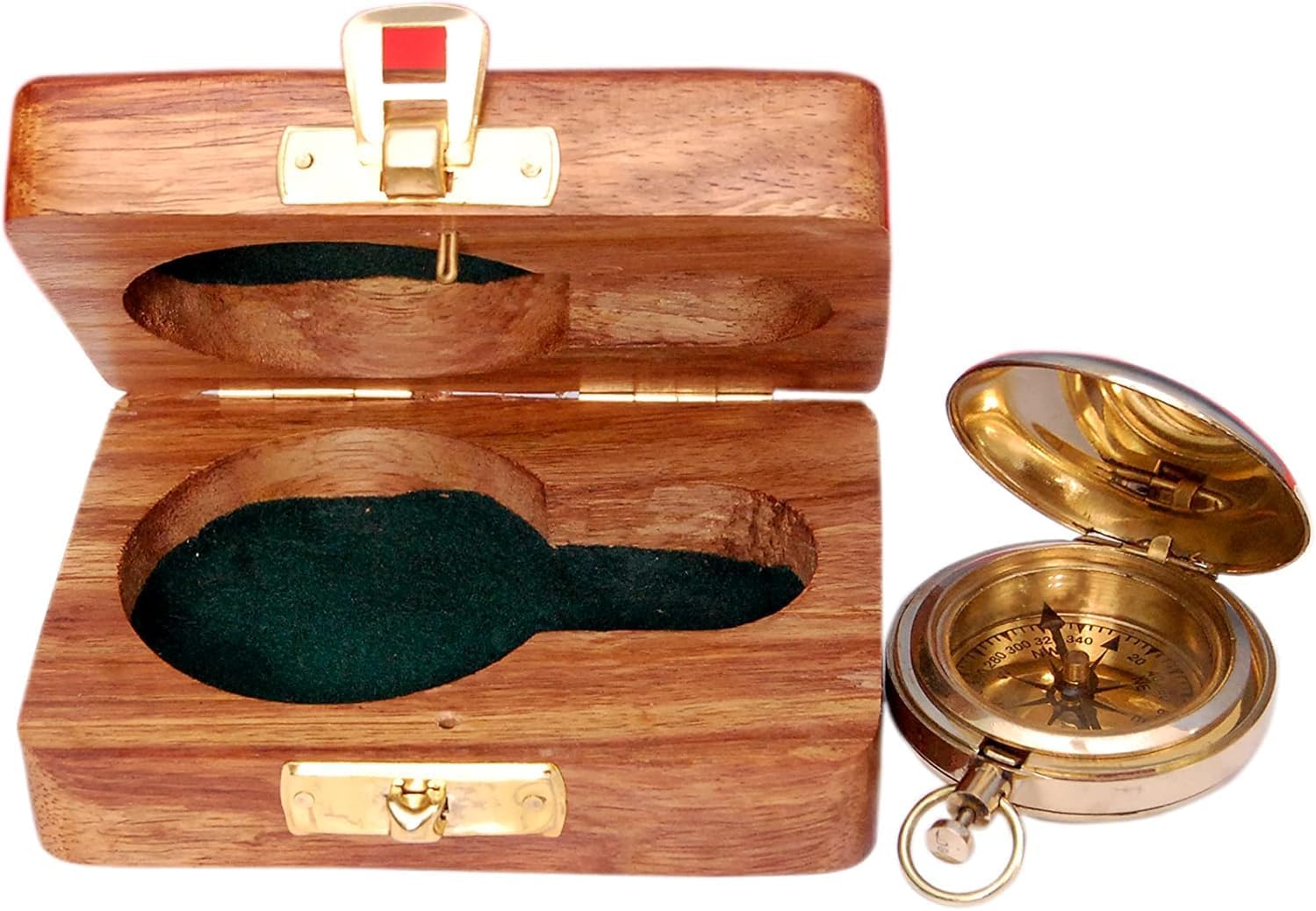 Round Compass 2in dia Brass Antique Finish, with Wooden gift box among the Four Great Inventions, the magnetic compass was first invented as a device for divination as early as the Chinese Han Dynasty and later adopted for navigation by the Song Dynasty Chinese during the 11th century. The first usage of a compass recorded in Western Europe and the Islamic world occurred around 12th Century The compass has Scout Oath inscribed under the lid. Planning to go on a trip? Consider bringing a compass with you. Even though nowadays, many people use their smartphones or other GPS devices for navigation, there is nothing more reliable than an old school compass. Whatever is your way of travelling, a compass will help to accurately determine the direction you are heading. In a broader sense, a sundial is any device that uses the Sun's altitude or azimuth (or both) to show the time. In addition to their time-telling function, sundials are valued as decorative objects, literary metaphors, and objects of mathematical study.