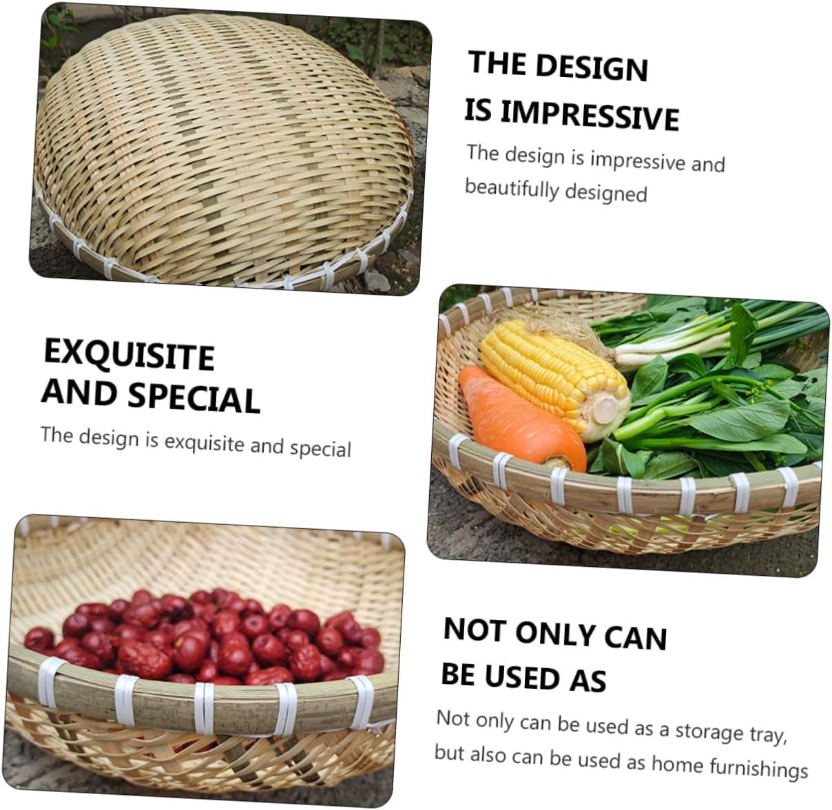 Package Include 1 x Storage basket Characteristics -Product Info: bun basket -Material: -Color: As shown -Size: About 36.00X36.00X14.00cm/14.15X14.15X5.50inch -Perfect for most scenes such as home and hotel, very chic desktop storage basket, increasing the quality of life Fruit Tray. -It is also very suitable for picnic, home storage basket, home decoration Packaging Basket. -Multi-function storage is also a simple storage solution for placing fruits, snacks, or some other small kitchen utensils Food Serving Tray. -Elegant color and fine texture. The texture is clear, the curve is natural, and the color is elegant. -Made by premium and materials, safe and environmental protection, very strong and use.Goods InformationHousehold Basket Made of , and safe.Kitchen Organizer It can store your bread, eggs, steamed buns, etc.Bun Storage Basket , and it will bring you of convenience.Bread Organizer It has a simple design, but it is very practical to use and give you a good experience