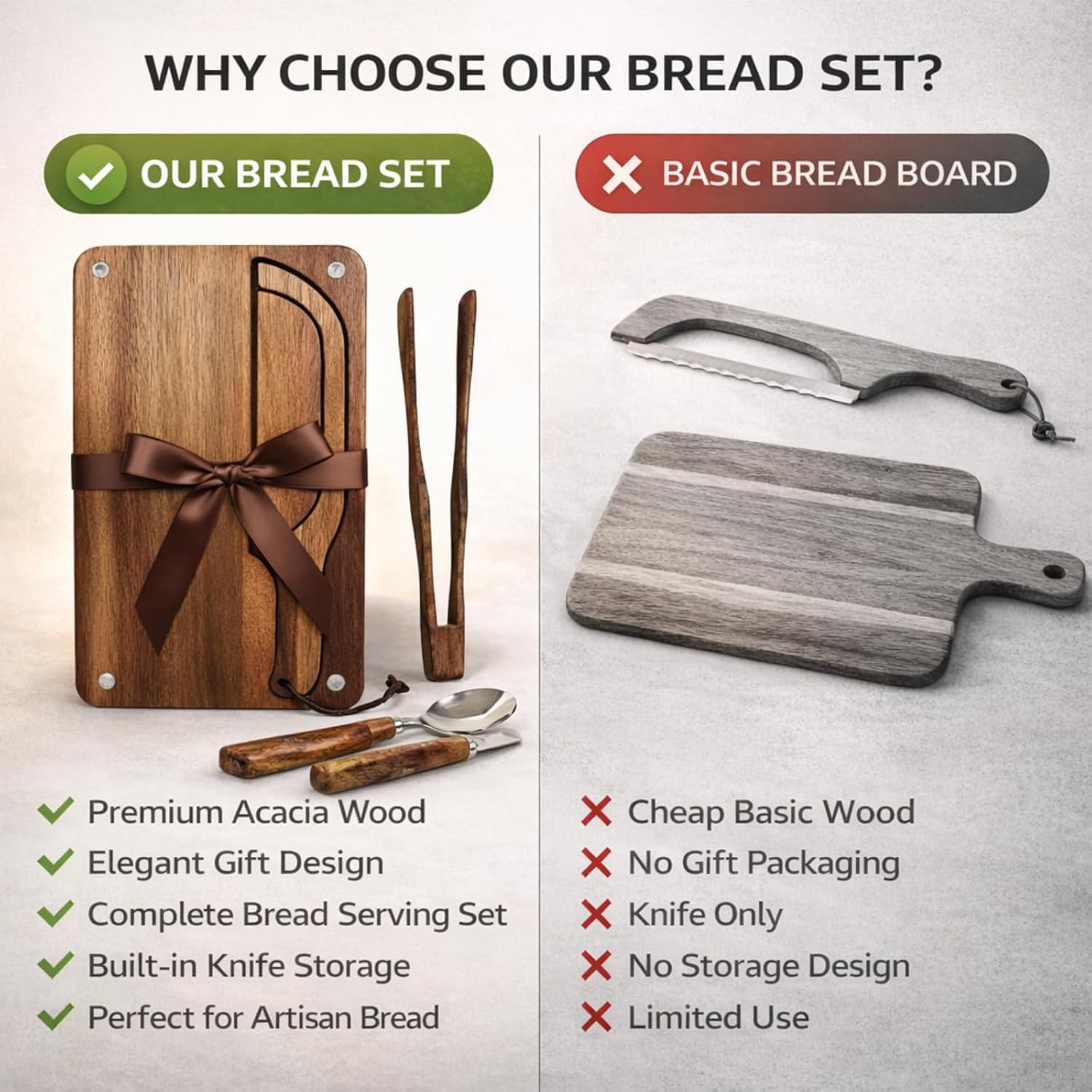 | Included Components | Bread Board and Bow Knife Serving Set with Tongs, Spoon, and Butter Knife |