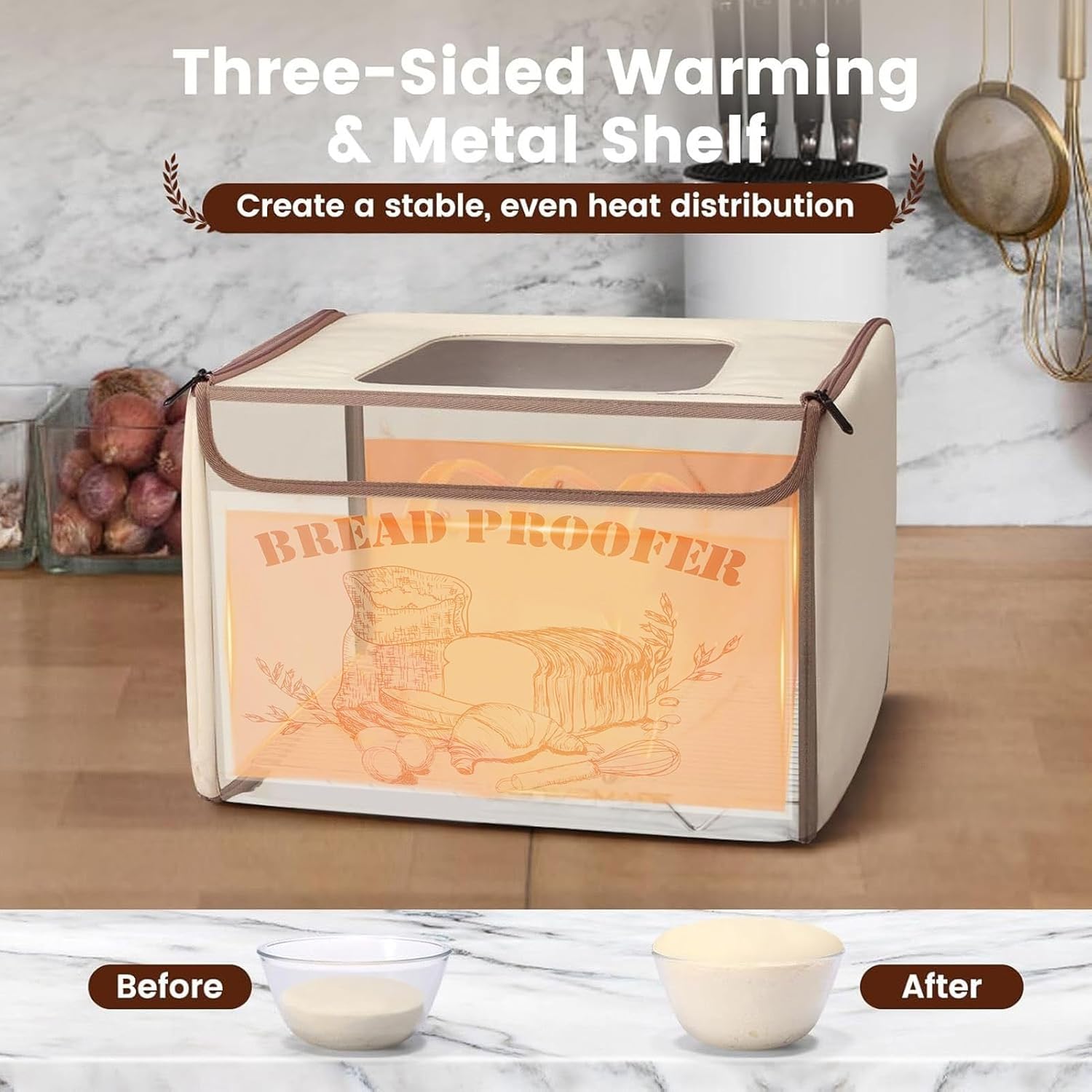 • [SUPERIOR THERMAL STABILITY] Engineered with a five layer insulation system this dough proofer maintains outstanding thermal stability and excellent heat retention. The interior not only allows for effortless cleaning but also ensures even temperature distribution across the entire box. No more fluctuating temperatures or cold spots just reliable and consistent warmth to help your dough rise perfectly.