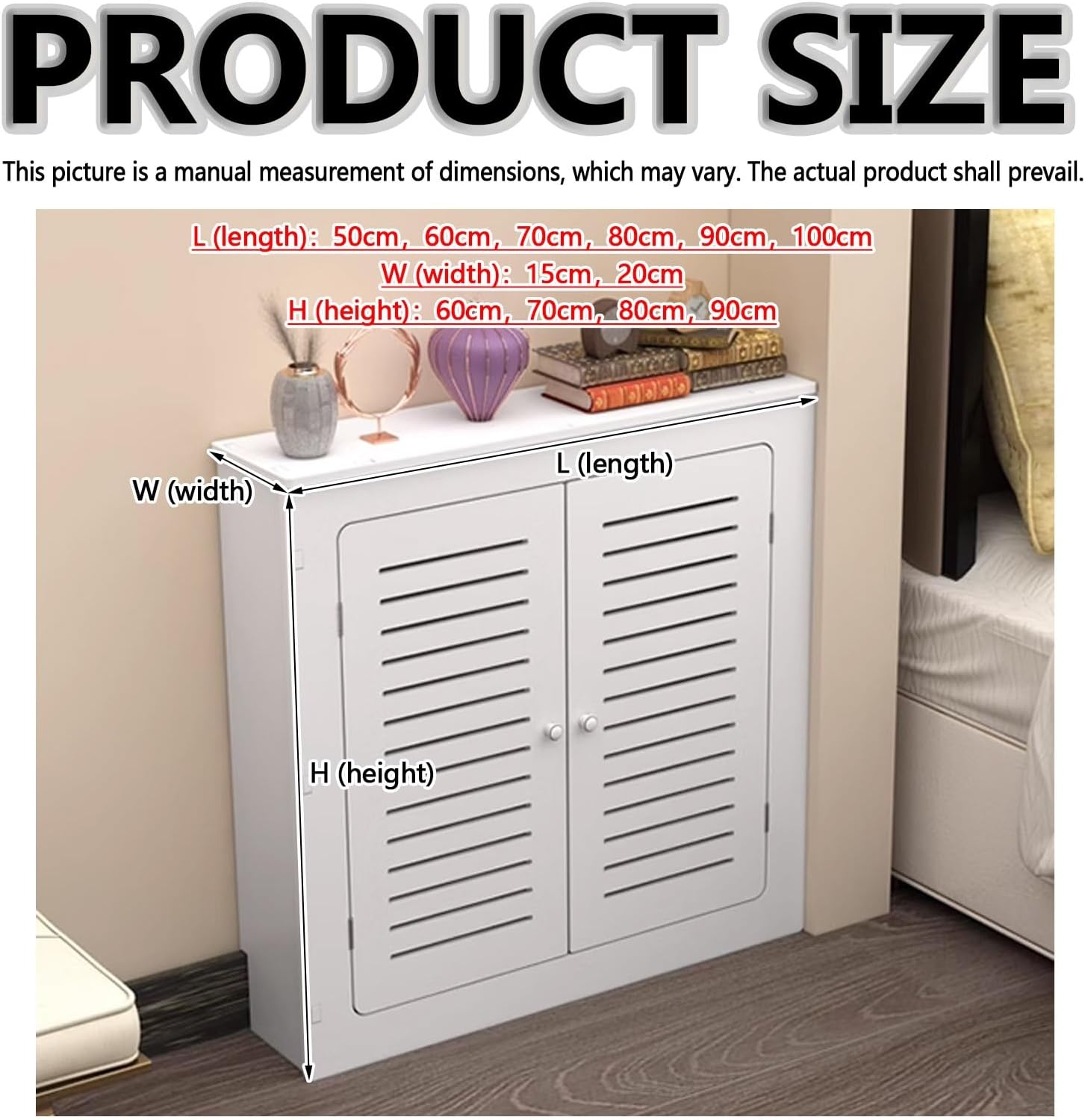 Breathable radiator covers with storage platform, radiator decoration covers with 2 doors, Modern heater covers for radiators, radiator Cabinet Shelf, steam radiator covers.Name: Ventilation Radiator CoverApplicable scenarios: bedroom, living room.Used to hide: water distributor, heating water pipes and other fixed and immovable equipmentWarm Tips:Due to manual measurement, please allow 1-3 cm error.Due to factors such as light and display, the actual item received may be different from the picture. Please refer to the actual product.