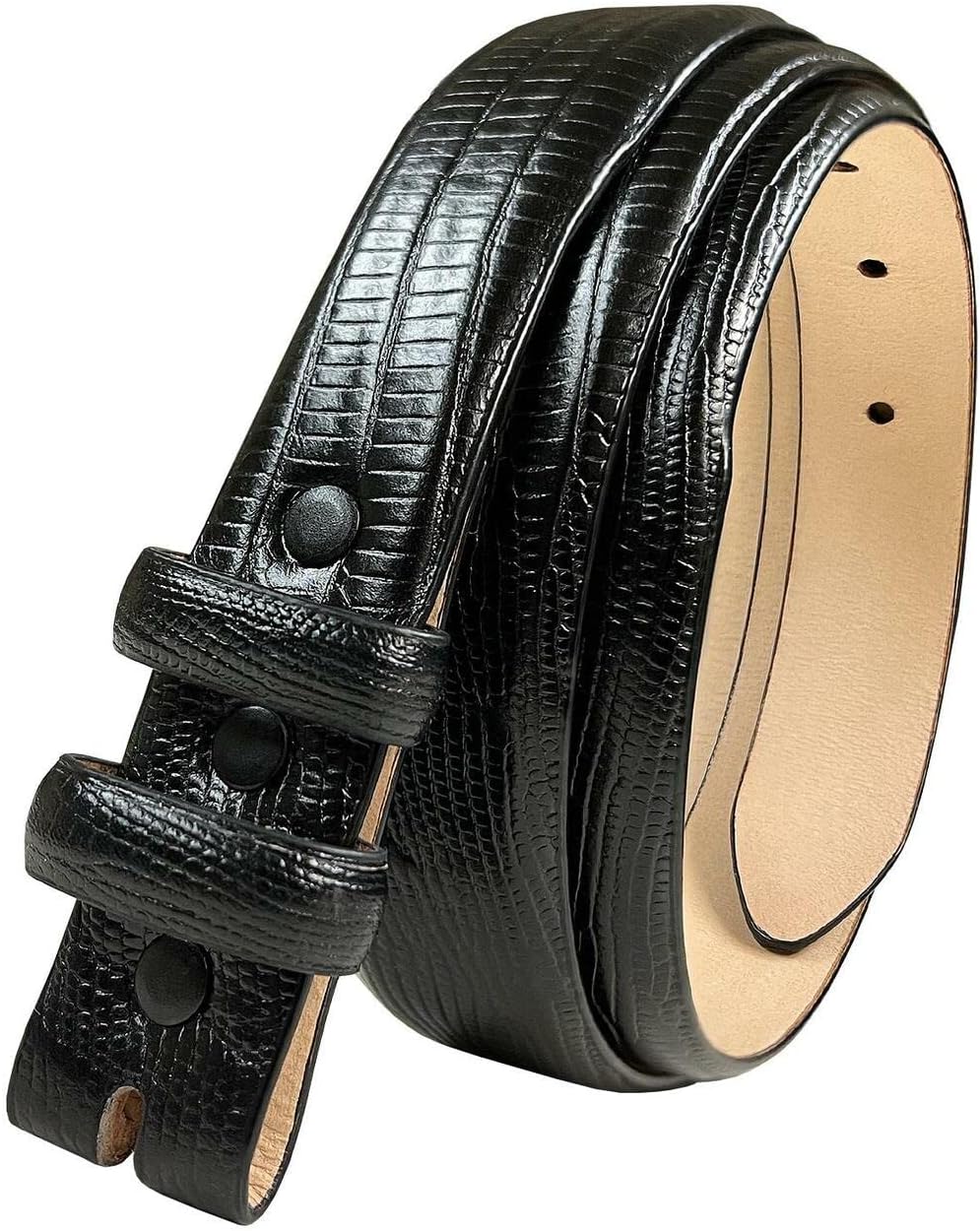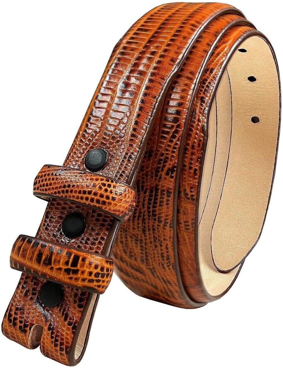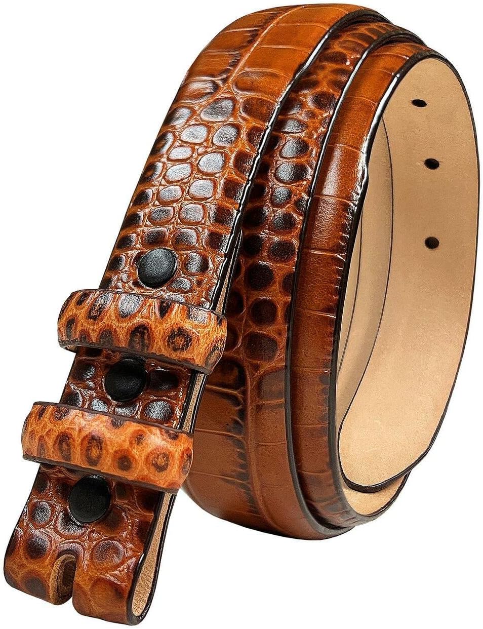 Made from High-quality Genuine Full-Grain Cowhide Leather, Hand-polished silver plated four-piece buckle set belt. 1-1/8"(30mm) taper down to 1"(25mm) wide belt with 5 belt holes for plenty of room for adjustments to offer maximum comfort. A great designer dress belt perfect for work, business, sport, and outdoor. Detailed of Alligator, Lizard embossing, or smooth leather belt. ★★★ How to measure your Belt size ★★★: The best way is to measure around where you wear the belt and add 2 inches to the measurement. Our belts are measured from the fold where the buckle is attached to the middle hole. If you want to get the best size we recommend measuring a belt that works for you from the fold to the hole where you wear the belt.