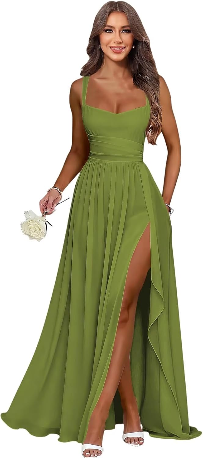 Features:Dvdci Bridesmaid Dresses Long Chiffon Ruffle Slit Pleated Evening Dresses for Women Fabric:chiffon Silhouette: a line Back:lace up back Size selection: Please follow the measure chart, provide your measurements as follows: 1. Bust___inches 2.Waist___inches 3.Hips___inches 4.Hollow to floor ___inches 5.Natural height(without shoes)___inches 6.Heels height___ inches 7.The date you need the dress:____