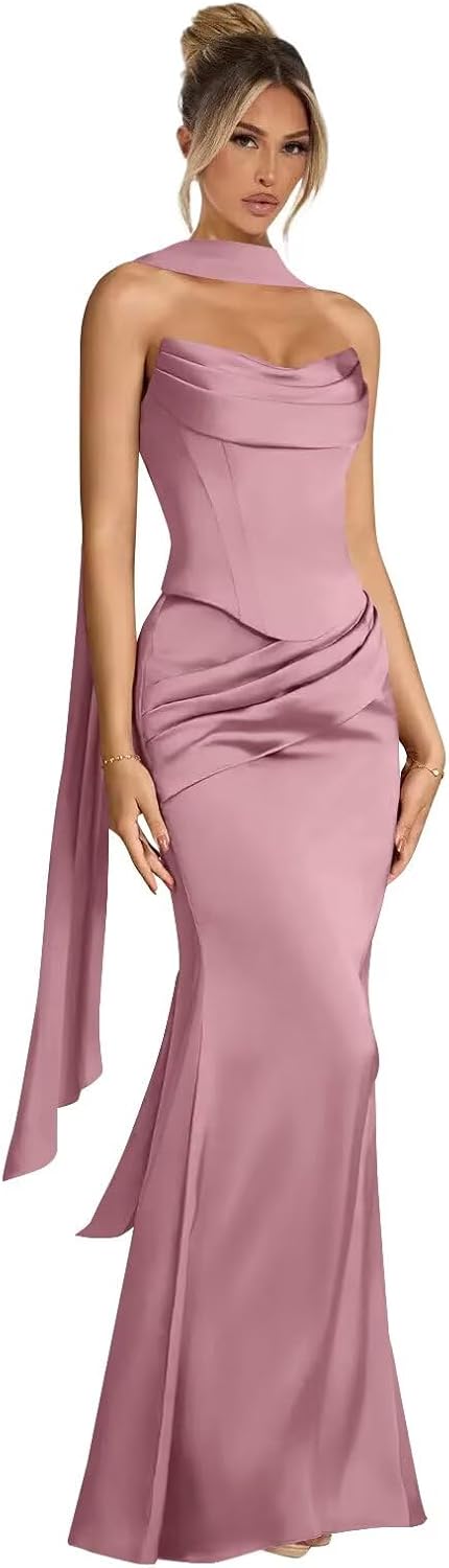 Welcome to come THBOEERAbout This ItemFeatures:Satin,Strapless,Mermaid,Sweetheart,Scarf,Long,A Line,Elegant,Pleated,Bodycon,Sleeveless,Glamorous,Built in Bra,Fully Lined.Strapless Satin Bridesmaid Dresses 2025,Satin Bridesmaid Dresses for Women with ScarfOccasion:This dress for Bridesmaid,Prom,Formal,Ball Gown,Wedding Guest,Cocktail,Birthday,Party,Evening,Pageant,Holiday,Graduation,Pageant,Family Gathering,Special Occasions or Other Formal and Semi-Formal Occasions.About Size:When you choose the size for this satin strapless mermaid bridesmaid dress, please read our size chart, then choose accordingly.Customized ServicesBust=___cmWaist=___cmHips=___cmHeight=___cmGarment Care: Please Hand wash this productNote:1. The real color of the item may be slightly different from the pictures shown on website caused by many factors such as brightness of your monitor and light brightness.2. Please allow slight manual measurement deviation for the data. All weights and dimensions are approximate value.3. Size is the manual measurement, because of the different measurement methods for each person,there may be errors 1-2cm.