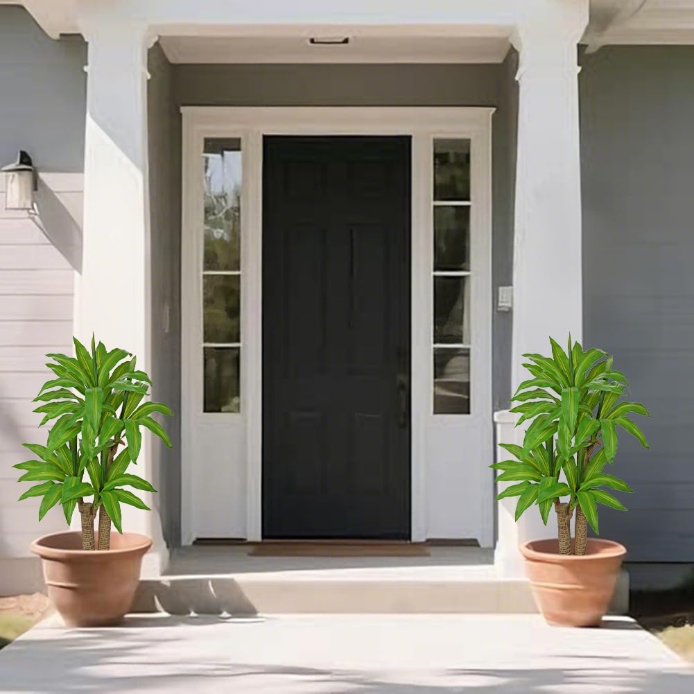 Bring Natural Structure & Greenery into Your Space This 3.24ft/38.9-inch artificial dracaena tree is designed to replicate the look of a mature, well-grown indoor plant—without the maintenance. Featuring lush dracaena-style leaves and a thick cane-inspired trunk, it delivers a more realistic, substantial presence than typical faux trees with thin stems. Unlike traditional dracaena trees where leaves grow only at the top, this design reflects natural growth patterns found in real dracaena plants. The sturdy trunk supports leaves growing from the sides, similar to how new shoots emerge from mature canes after pruning. The result is a fuller, more organic silhouette that feels balanced, natural, and true to life. Thoughtfully crafted details—from the textured cane-style trunk to the flowing green leaves—add depth and realism, helping this faux dracaena tree blend seamlessly into modern homes, apartments, offices, or reception spaces. Placed beside a sofa, desk, or in an empty corner, it adds height and structure without overwhelming the room. Standing nearly 3.5 feet tall, this artificial floor plant works beautifully as a tall faux plant or indoor artificial tree for living rooms, bedrooms, entryways, and studio apartments. Set in a sleek black pot with decorative pebbles, it complements a wide range of décor styles, from minimalist and modern to farmhouse and contemporary. Designed for everyday living, this realistic faux greenery stays vibrant year-round with no watering, sunlight, or pruning required. Whether you’re looking for artificial indoor plants, fake house plants decor, or fake plants with pot that look natural and refined, this dracaena tree offers lasting beauty with zero effort.