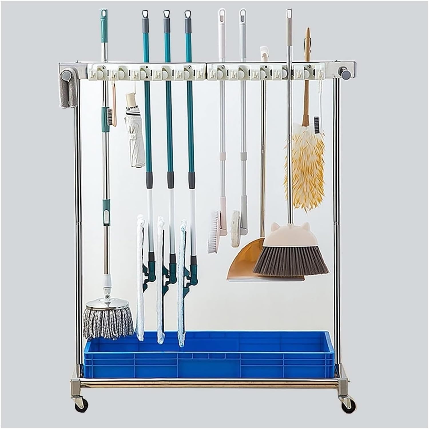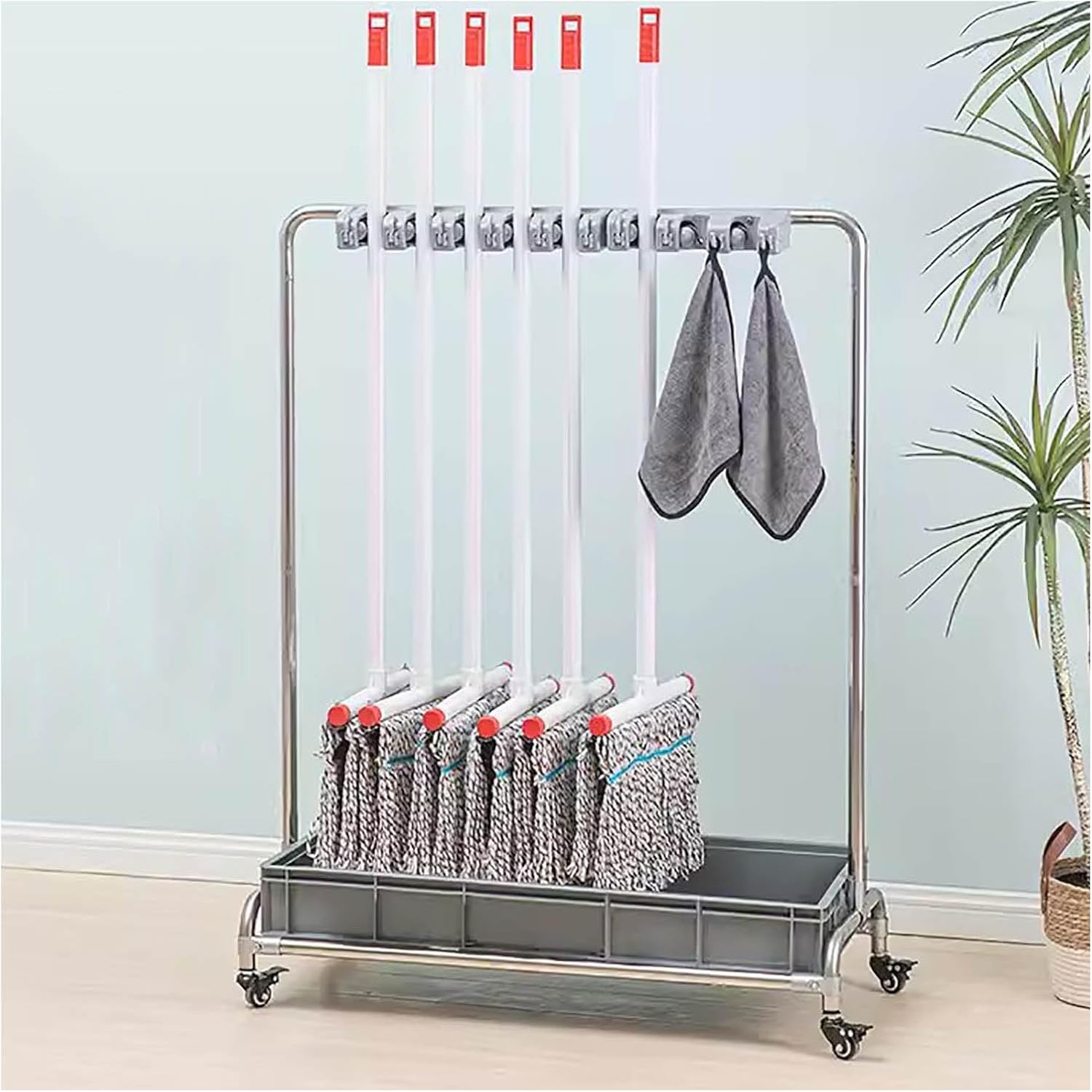 Say goodbye to cluttered and hello to a cleaner, more organized space with our Multi-Layer Mobile Cleaning Tool Storage RackSpecifications:Material :Stainless SteelPool: Stainless SteelProduct Size:Please refer to the picture sizeCan Hang Mop Stick, Direct Range: 5slots , 10 slotsApplication:Schools, Hospitals, Restaurants, Factories, Hotels, Property CompaniesPacking List:1x Movable Mop Broom Holder