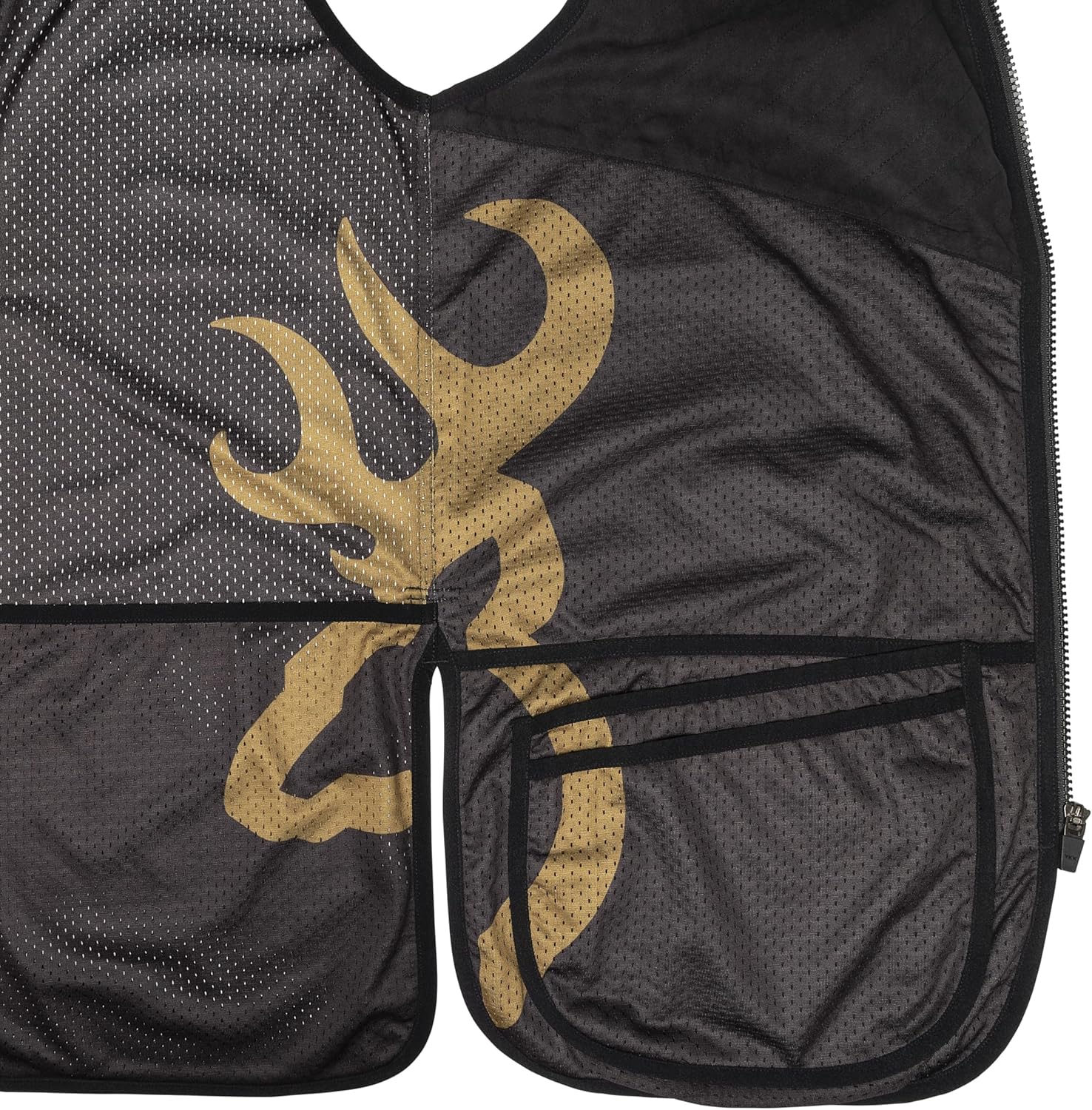 The Browning Team Vest is ready to help you bring home the trophy from your next shoot. This premium quality vest is constructed using lightweight, breathable polyester fabric and mesh construction to keep you cool and allow for freedom of movement and an uninterrupted mount and swing. Bold graphics will have you looking great. Shell pockets keep ammunition at hand and a large hull pocket at the rear is easy to access. The full-length shooting patch hides a pocket for a Browning REACTAR G3 pad (available separately) to ease the sting of long days. Metal clips on the back make it easy to add a number.
