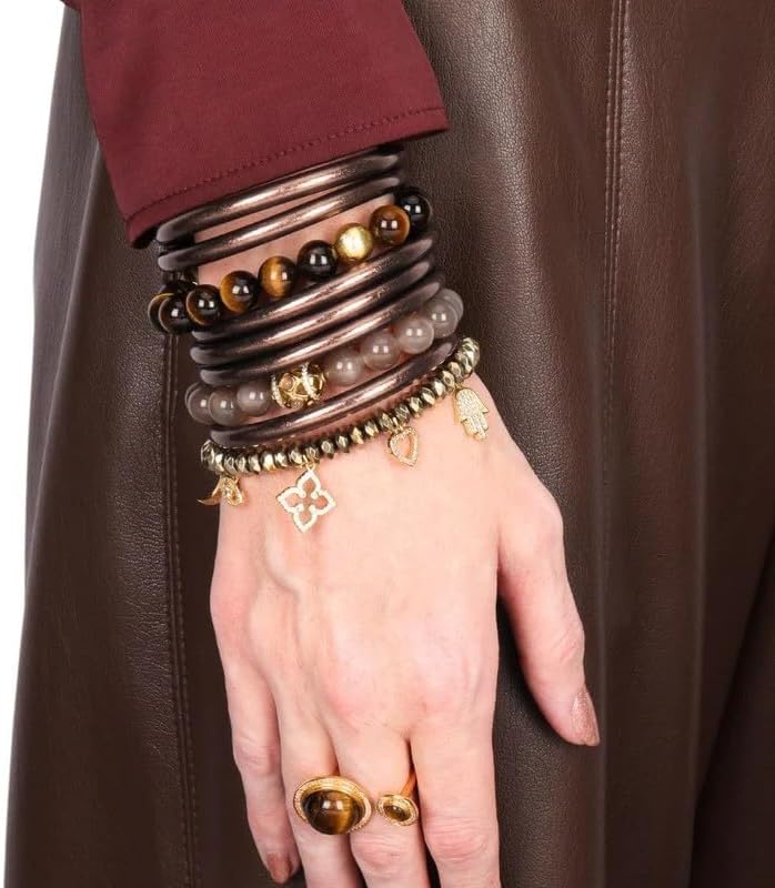 The BuDhaGirl Myth Charm Bracelet is a legendary addition to your wrist collection, featuring multi-faceted gold rondelles strung together with timeless symbols of contemplation, strength, wisdom, and protection. Adorned with meaningful charms like the Moon, Heart, Hand, Eye, and Flower, this bracelet inspires a connection to your inner self while adding a touch of elegance to your ensemble. Handcrafted in the USA, the Myth Charm Bracelet is a one-size-fits-all piece, designed for those who seek both beauty and intention in their accessories.