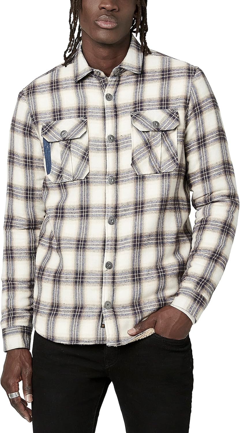 Because a great idea is worth repeating, our designers created a bold plaid Shacket lined in lofty sherpa. Perfect for those first cooler days of the season, this regular fit button front Shacket features a traditional collar with two button-through flap pockets at the chest. The herringbone ground lends a textured look to the overall plaid pattern. Wear it over a T-shirt and a pair of jeans and you're in good kit as the Brits like to say.
