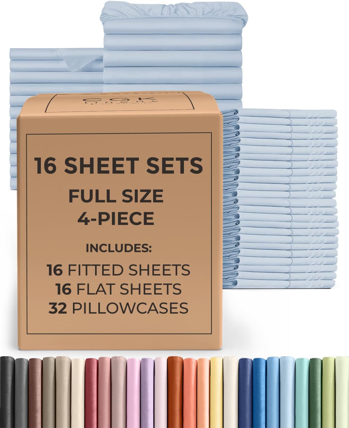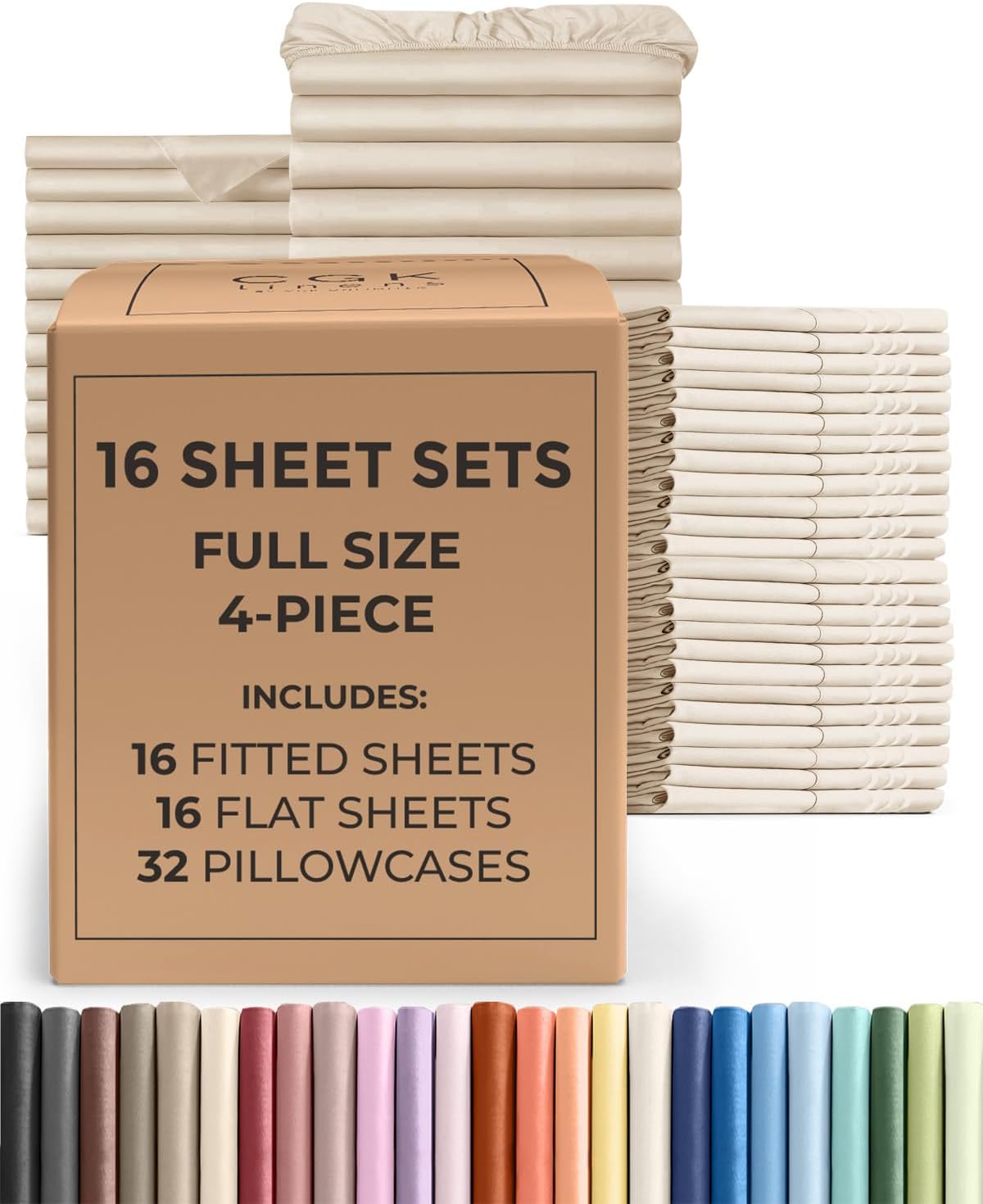 | Included Components | 16 - Fitted Sheets, 16 - Flat Sheets, 32 - Pillowcases |