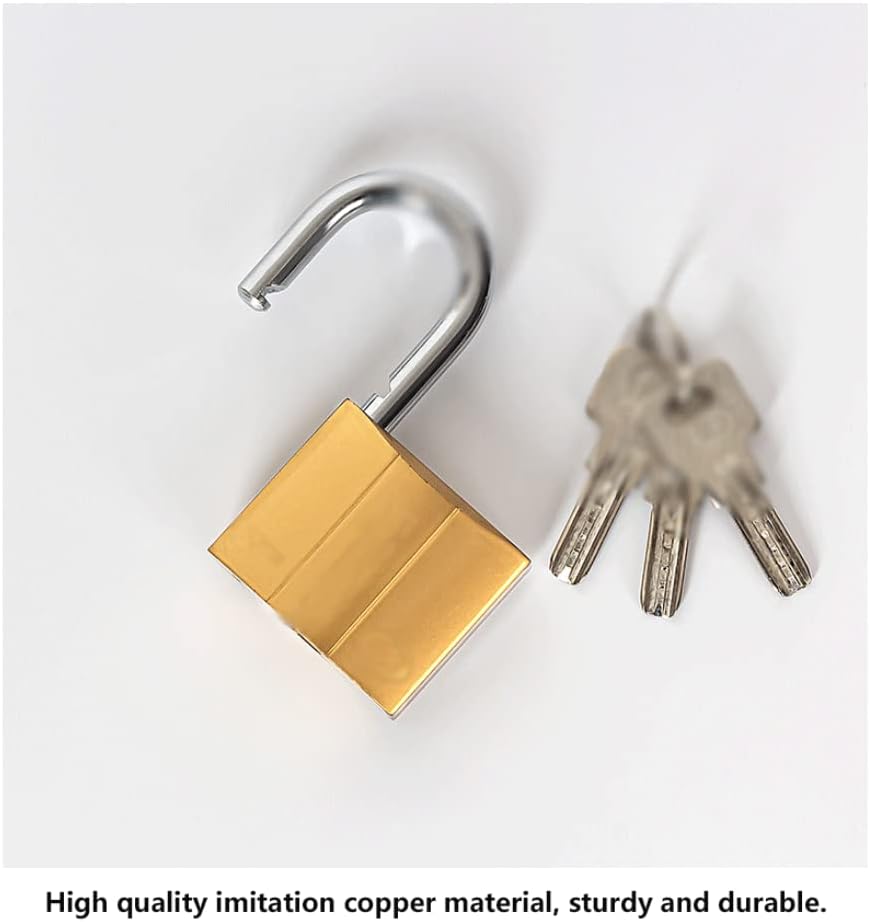 For indoor and outdoor use; ideal to secure storage units, fences, garage, doors, cabinets and more.name: padlockMaterial: imitation copperSize: 74MMx58MM, lock hook diameter 11MMWidely used:Padlock great suitable for door locks,large warehouse, storage units, garage, cabinets ,garden shedand more.If you have any questions after purchasing and using the product, you can contact us at any time. We are online 24 hours to solve your.