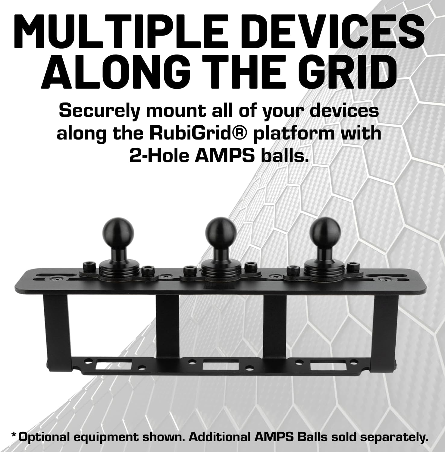 CUSTOMIZE YOUR SUPER DUTY COMMAND CENTER. GO BULLETPOINT!If you're looking to securely mount multiple devices in your 2023+ Super Duty within the center console area, this is the rock-solid system you're been waiting for.This RubiGrid mount is engineered specifically for those who want to keep their devices mounted down low near the charging ports and always within reach.IMPORTANT: this mount is only compatible with trucks equipped with the 40/console/40 seating configuration. It is NOT compatible with the 40/20/40 bench.WHAT IS RUBIGRID? RubiGrid is our most versatile mounting platform. It is a fully modular system that utilizes a grid-style base, allowing you to attach 2-Hole AMPS balls wherever you need them.Built specifically for the 2023+ Super Duty, mount up to 3 devices & easily change the configuration and location of your mounting balls to dial in your perfect setup.Whether you need to mount phones, tablets, action cameras or radios, RubiGrid can handle it. STRAIGHTFORWARD INSTALLATION Setting up your center console command center is quick & easy. Drill & Secure: requires drilling 6 small pilot holes and using the included 6 self-tapping screws to secure the mount into the plastic trim panel (located between the cupholders & sliding cubby).Configure: attach the 2-Hole AMPS balls anywhere along the grid-style base depending on your desired placement.Mount: attach the mounting arm and device holder to complete the setup. The result is a professional-grade mounting platform built to secure your essential tech. All necessary hardware is included with the exception of a drill. WHAT'S INCLUDED?RubiGrid Center Console Mount2-Hole 20mm AMPS Ball1cm Mounting ArmSpring-Loaded Universal Phone Holder