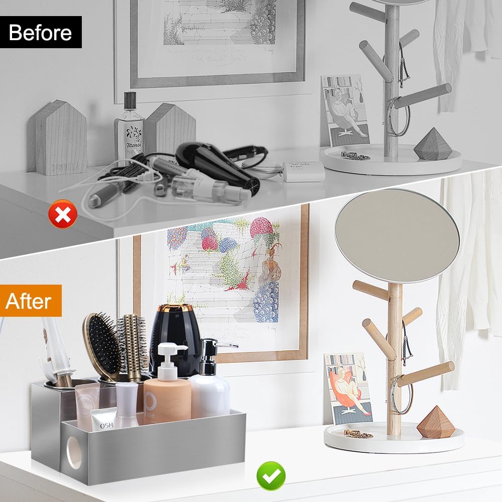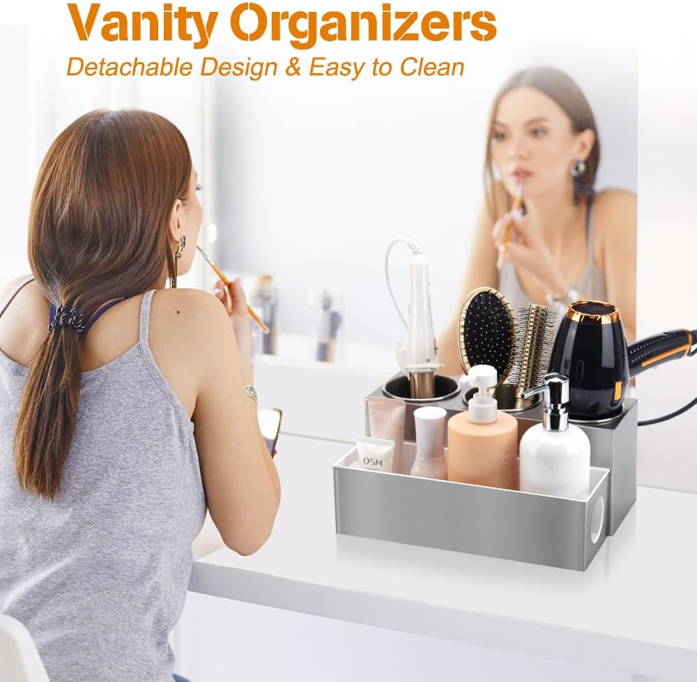 Hair Tool Organizer - Bathroom Vanity Organizers and Storage, Hair Styling Accessories Hot Tools Organizer Hair Dryer, Blow Dryer, Curling Iron, Flat Iron, Hair Straightener, Silver