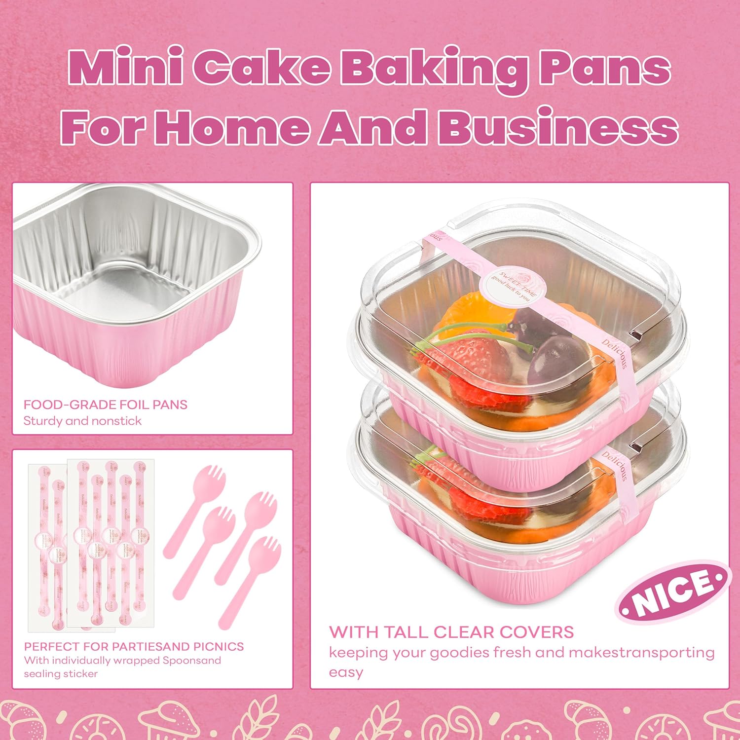 NPLUX Bundle of 50 Pcs Mini Square Baking Cups with Lids and Heart Shaped Cake Pans with Lids for Wedding Birthday Party