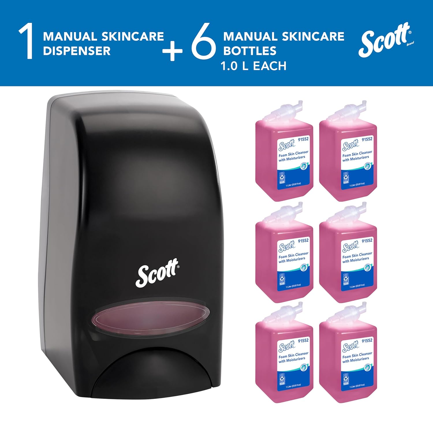 Bundle of Scott® Foam Hand Soap with Moisturizers, 1.0 L Pink, Floral Scent Refills + Scott Essential Manual Skin Care Dispenser, Black