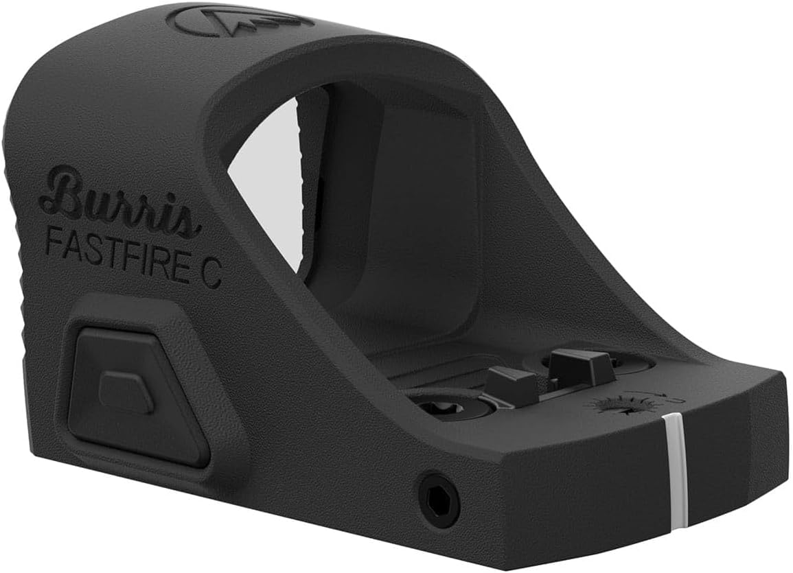 BURRIS FASTFIRE C INTELLIGENT AUTO BRIGHT The integrated control circuit adjusts the brightness of the aiming dot according to surrounding light levels. The brightness sensor dectects the light level in the direction of the target and modifies the intensity of the dot accordingly so that it is not overpowering in low light while remaining highly visible in bright daylight. When holstered, or stored, the optic goes into an ultra-low brightness setting, saving the battery for when you need it! Bringing your firearm up to ready, instantly brings the dot back to the optimal level! Be careful not to obstruct the sensor. Clean if necessary. If you wish to check its function, cover the sensor. The Fastfire C works for the following Handguns: Springfield Hellcat, Sig Sauer P365, S&W Shield Plus, Ruger MAX 9, Glock 43/43x/48MOS, CZ P-10 S, Stoeger STR-9, Beretta 80x Cheetah and CZ P-09 C Nocturne.