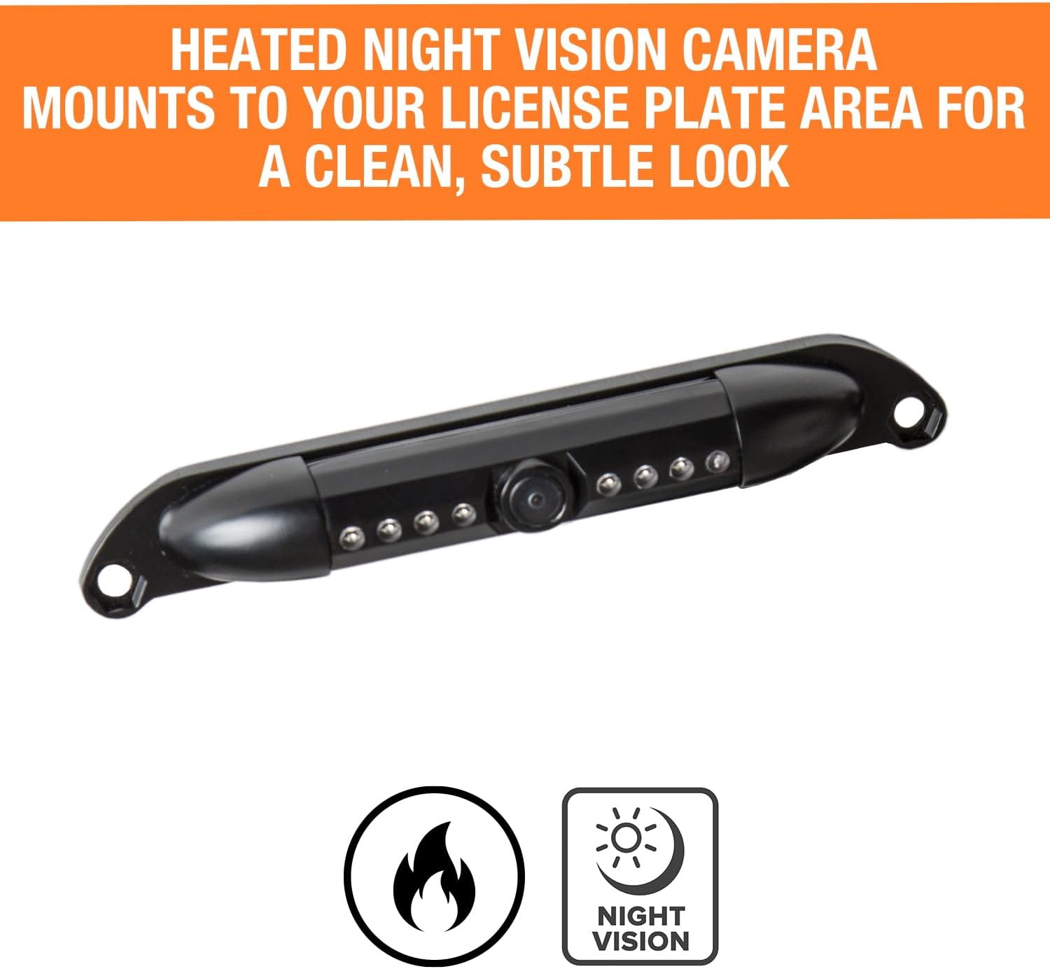 Buyers Products Rear Observation System with License Plate Camera is designed to improve rear-view visibility and obstalce observation. The system's night vision camera features a 120 Degree viewing angle and mounts to your license plate for a clean, subtle look . The 7 in. full color monitor displays at an 800x480 resolution and comes with multiple mounts to suit many applications. There's also a wireless remote for easy operation in or out of your vehicle and a 65 ft cable included. The durable camera is rated IP68 for water and dust resistance.