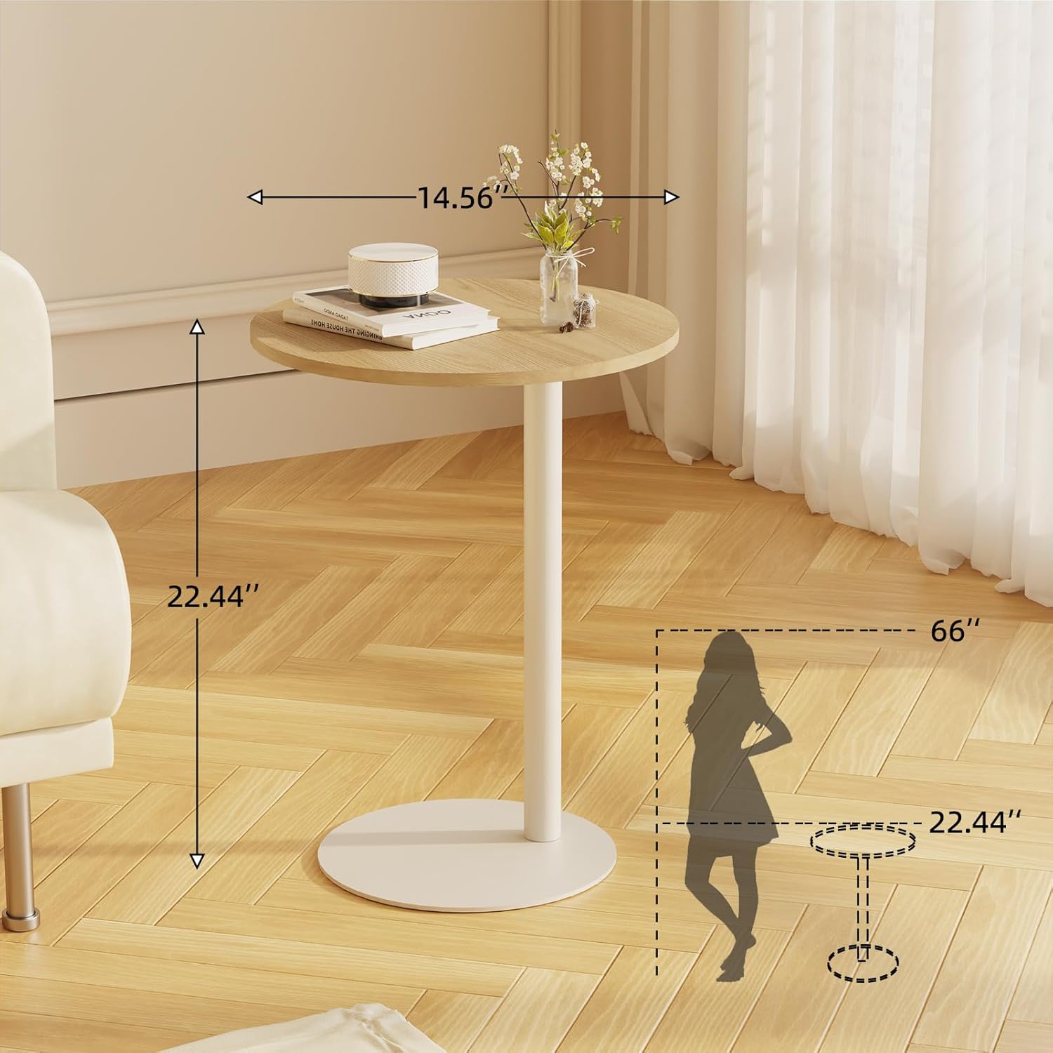 C shaped round end Table, Small side Table for couch, snack Sofa Table with Metal Leg for Living Room, Bedroom, Bedside,and Office (Rustic Oak)