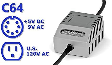 High-quality Commodore 64 replacement power supply unit (PSU). Designed specifically for C64 and VIC-20 systems to preserve them in a pristine condition for years to come. Stabilized and filtered +5V/2.0A DC along with 9V/1.1A AC ensure continued error-free operation of your C64.Replacement power supply for Commodore 64 and VIC-20Stabilized 5V/2.0A DC output with anti-ripple filterTransformer-generated 9V/1.1A AC outputOver-voltage and over-current protectionFused on AC and DC side and fully isolatedLED-illuminated high quality chassisDurable and thick cables on both sidesRuns coldWeight only 0.6 kg (1.3 lb)Compact enclosure with classic shape 86 mm x 70 mm x 48 mm (3.4" x 2.8" x 1.9")Round DIN7 plug with 5V DC and 9V ACUS-standard 120V AC power plug (U.S., Canada, Mexico, Japan, and others)