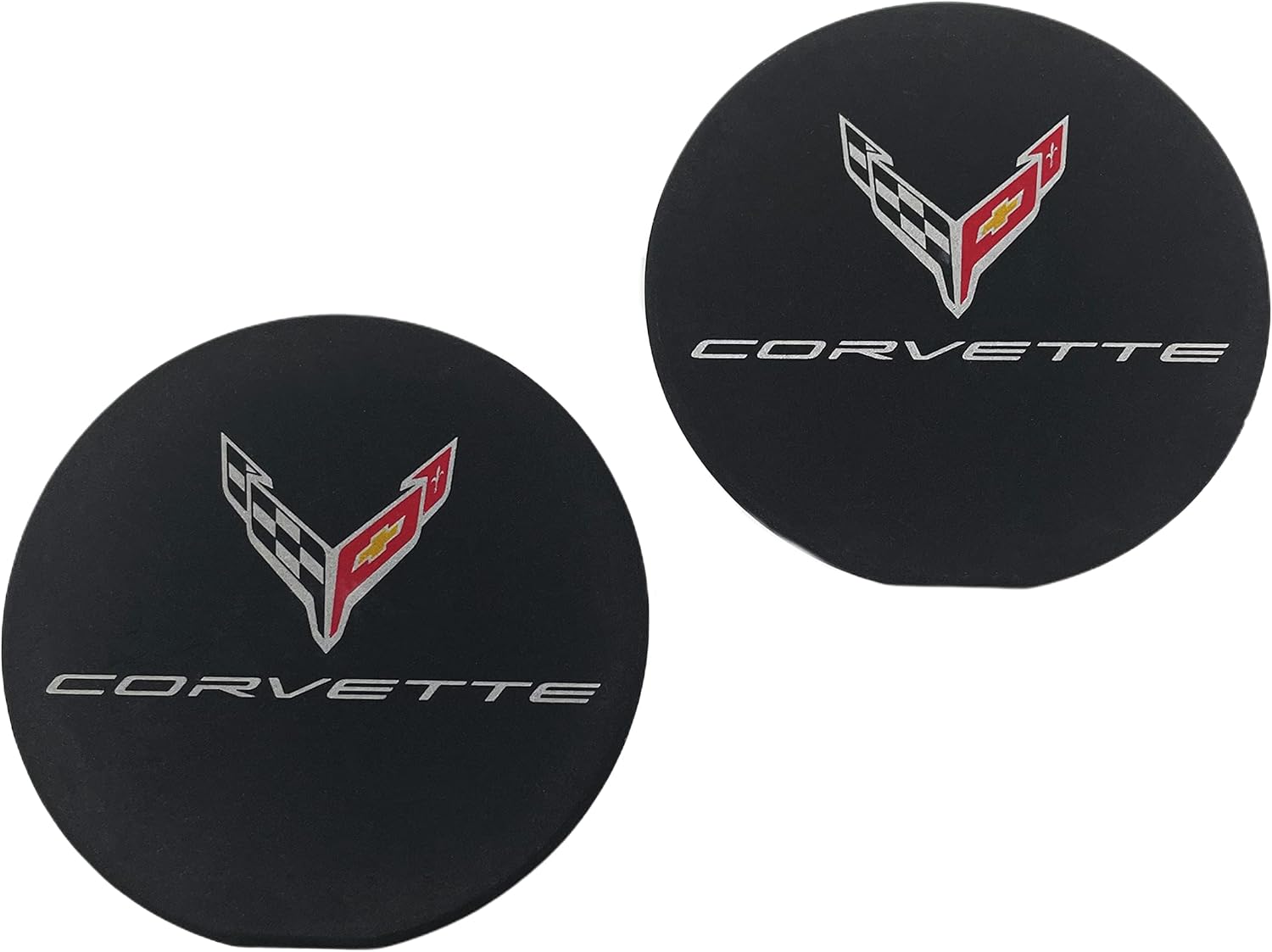 Set of 2 absorbent stone car coasters with the C8 Corvette crossed flags and signature. Fits most auto cup holders to absorb moisture. Easily removed for cleaning. 2-5/8” diameter. C8 Corvette Enthusiast Must-Have: If you're a proud owner of the C8 Corvette, these cup holder inserts are a must-have addition to enhance your driving pleasure and overall ownership experience. They're a subtle yet impactful upgrade that makes a world of difference. Elevate the style and functionality of your C8 Corvette's interior with our meticulously crafted cup holder inserts. Embrace the perfect blend of form and function, and enjoy your beverages in style while you conquer the road. Upgrade your Corvette today with our C8 Cup Holder Inserts.