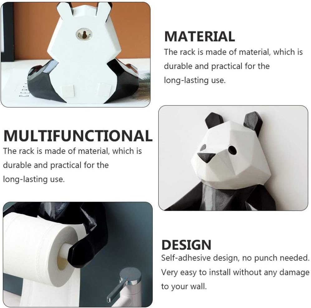 Features- Color: White, Black- Material: Resin- Size: About 18.8 x 16.5 x 12cm/ 7.39 x 6.48 x 4.72inch- Note: the installation accessory( Included)- The rack is made of material, which is durable and practical for the long- lasting use.- Features the panda shaped appearance, brings more fun to you.- Simple in structure, very easy to install.- It can hold your roll paper and make it cleaner and tidy, perfect for using in the bathroom.Package Including 1 x roll paper rack