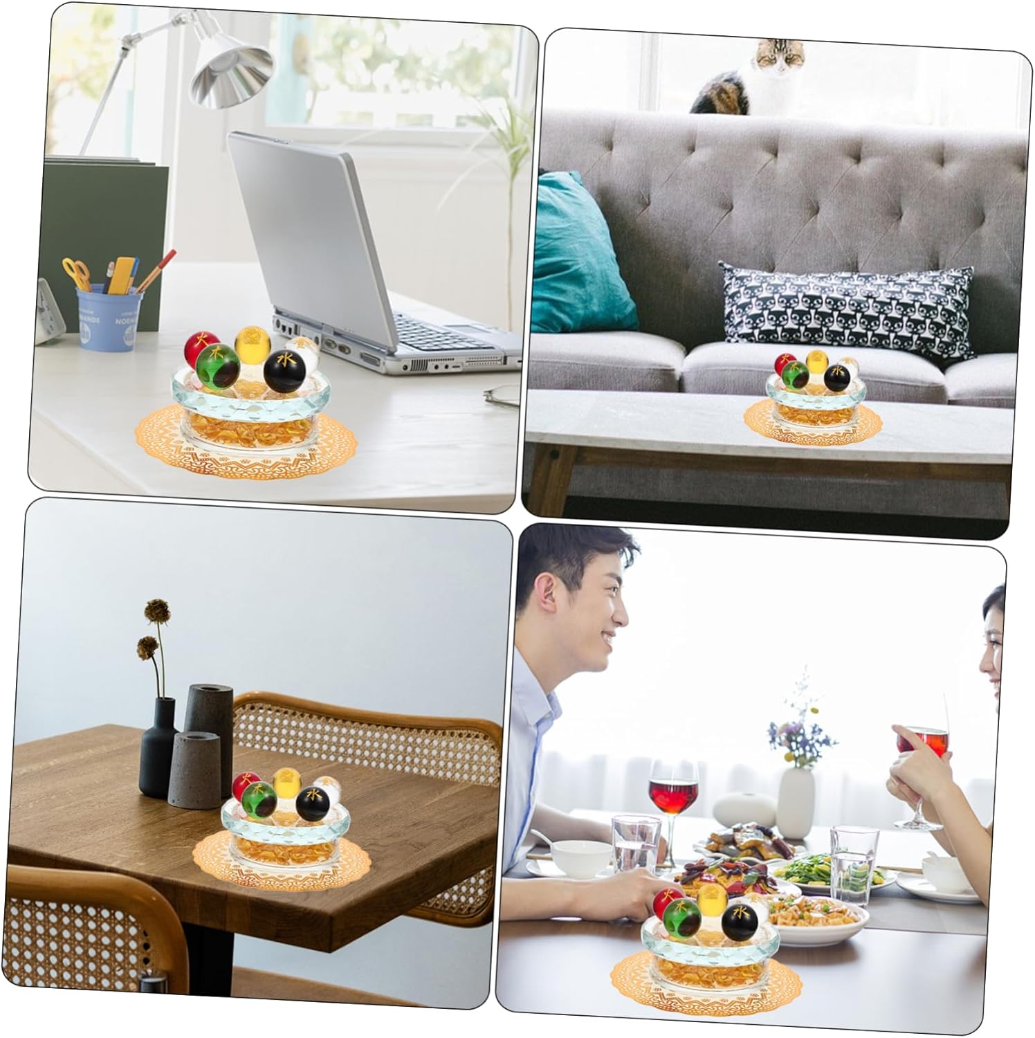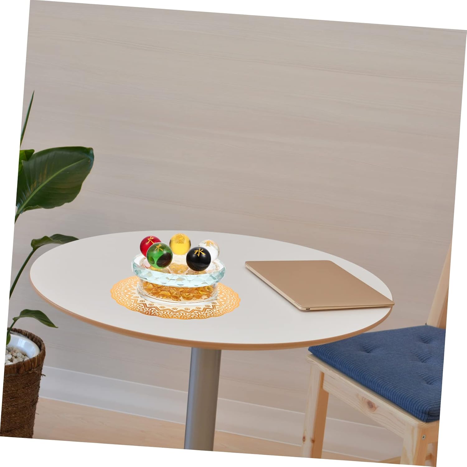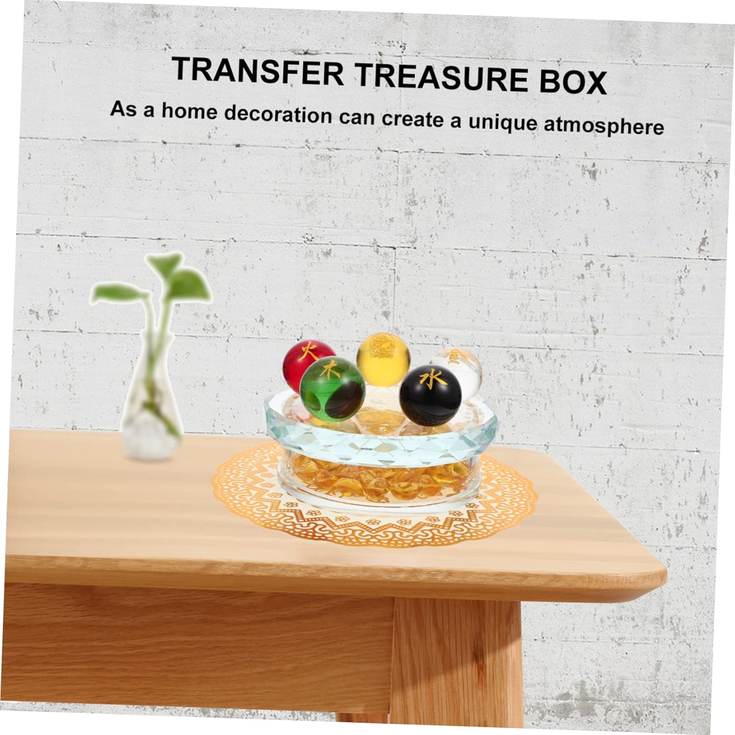 Package Include 5 × Glass Balls 1 × Glass Stand with 1 × Packing Case 1 × Cushion Features - Color: Golden Case Adorn. - Size: 12.00X12.00X7.00cm/4.72X4.72X2.75in Chakra Glass Balls - Material: Glass Adornment. - These glass balls are compact and small, so it is easy to carry and for travel use Box. - These chakra balls can be used for therapy and meditation which can stress and Glass Chakra Ball. - These glass balls can be combined with the five- stand to make an desktop decoration Glass Sphere Ball. - The box decoration symbolizes the fortune and wealth, so it is a store opening Desktop Decoration. - Chakra therapy use glass ball has massage functions, so it can make you feel relaxed and comfortable Fortune Decoration.Goods Description Adornment This is a set of and multipurpose five-element balls with a stand, which is made of good glass material, for use. Case Adorn Multipurpose chakra balls set is a delicate desktop adornment for home, yoga, office, and SPA decorating use