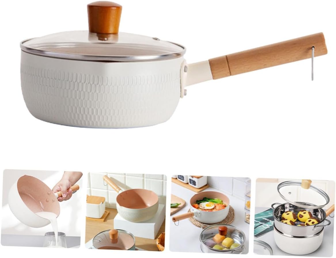 Package Include 1 x set of Features -Material: Wood, tempered glass, aluminum medical stone Cooking Pot. -Color: White Food Cooking Pot. -Size: About 34.00X18.00X8.00cm/13.36X7.07X3.14inch Soup Pot. -With non-stick design, this convenient will be easy to clean after using Milk Saucepan. -You can pour out through double diversion trench conveniently and Milk Pan. -It comes with a long heat-resistant, ergonomic and hole design handle, easy to store Instant Noodle Pot. -Very easy and convenient to clean, just use dishwashing to it after use Household Cooking Pot. -It is a container for cooking food, milk, sauces, desserts, salads, especially instant noodles, it can be used as a pot and also a bowl Complementary Food Pot.Goods Description Soup Pot The leak-proof design will make you pour food smoothly.Household Food Pot This is a milk saucepan.Milk Saucepan The long handle will protect your hands form high temperature.Heating Pot with Handle The thickened pot is suitable for cooking soup, complementary food, heating milk and etc.Instant Noodle Pot Made of materials, for use
